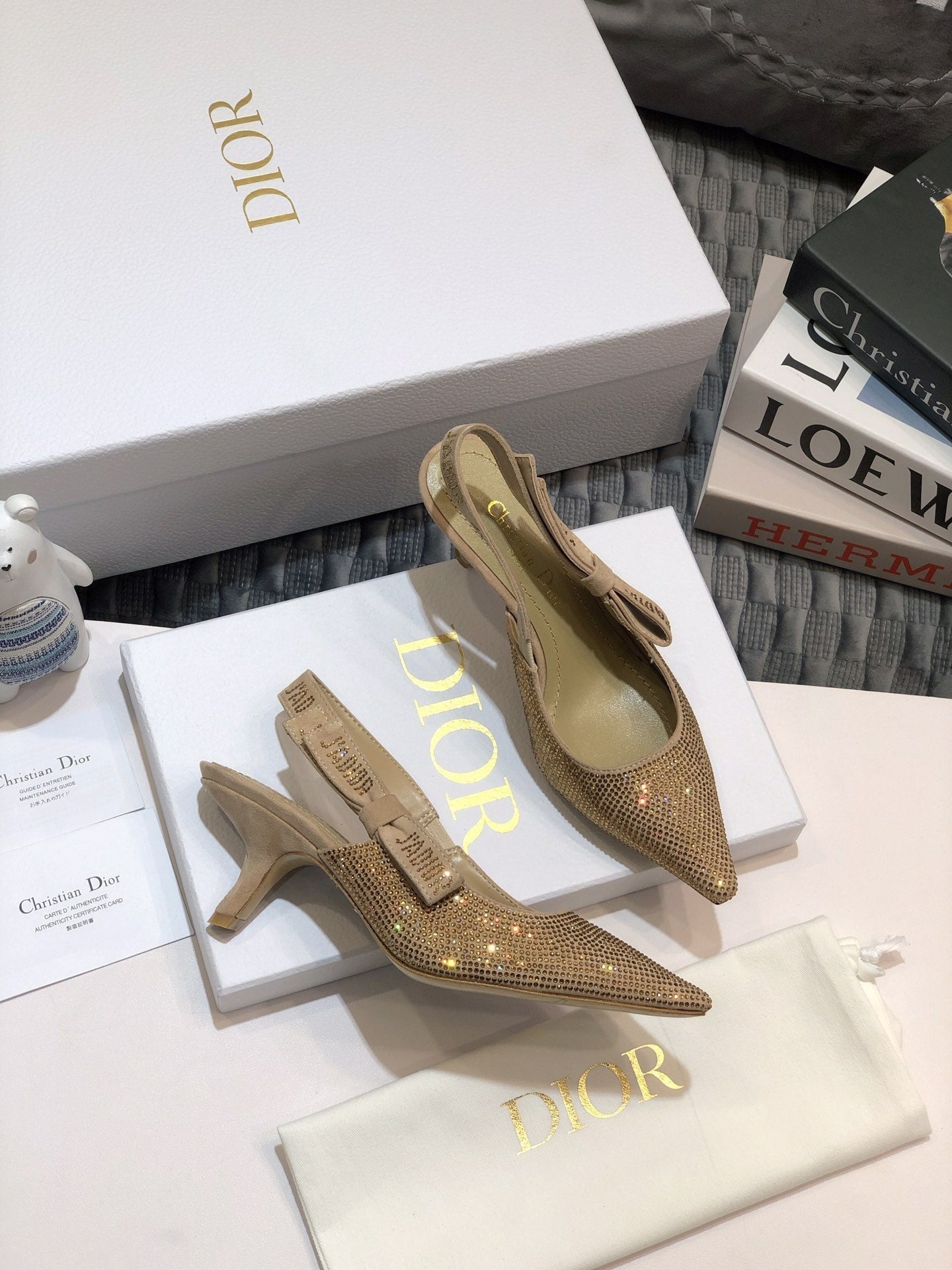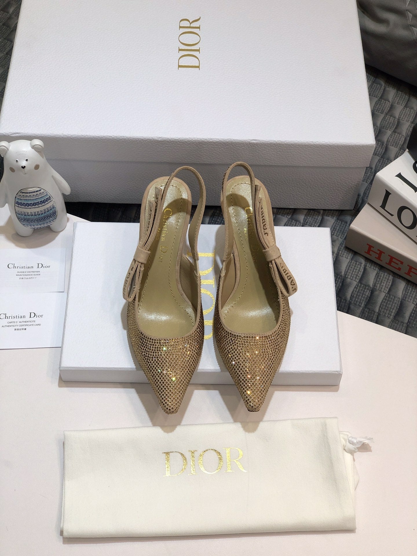 JAdior slingback pump 65 beige full diamond crystal and seude