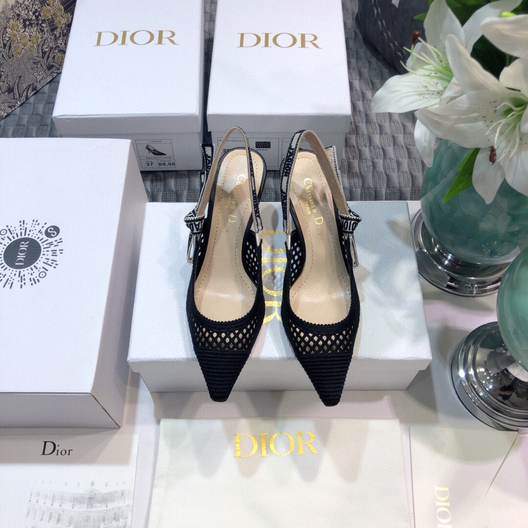 JAdior slingback pumps 65 transparent mesh black embroidered cotton