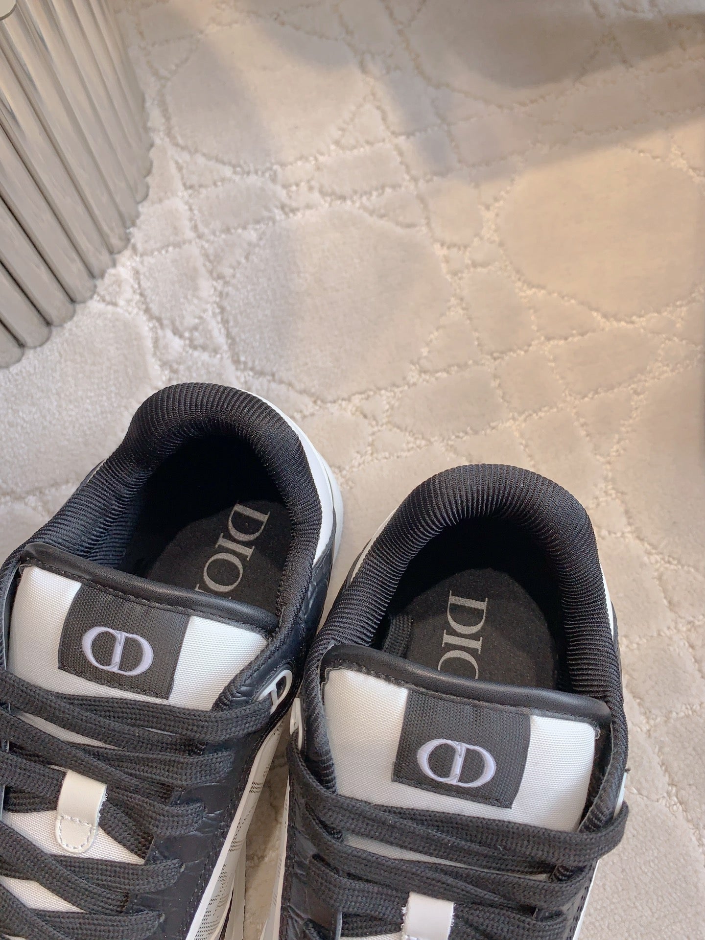 CD B27 Low-Top Sneaker White Black Print Wrinkled Calfskin