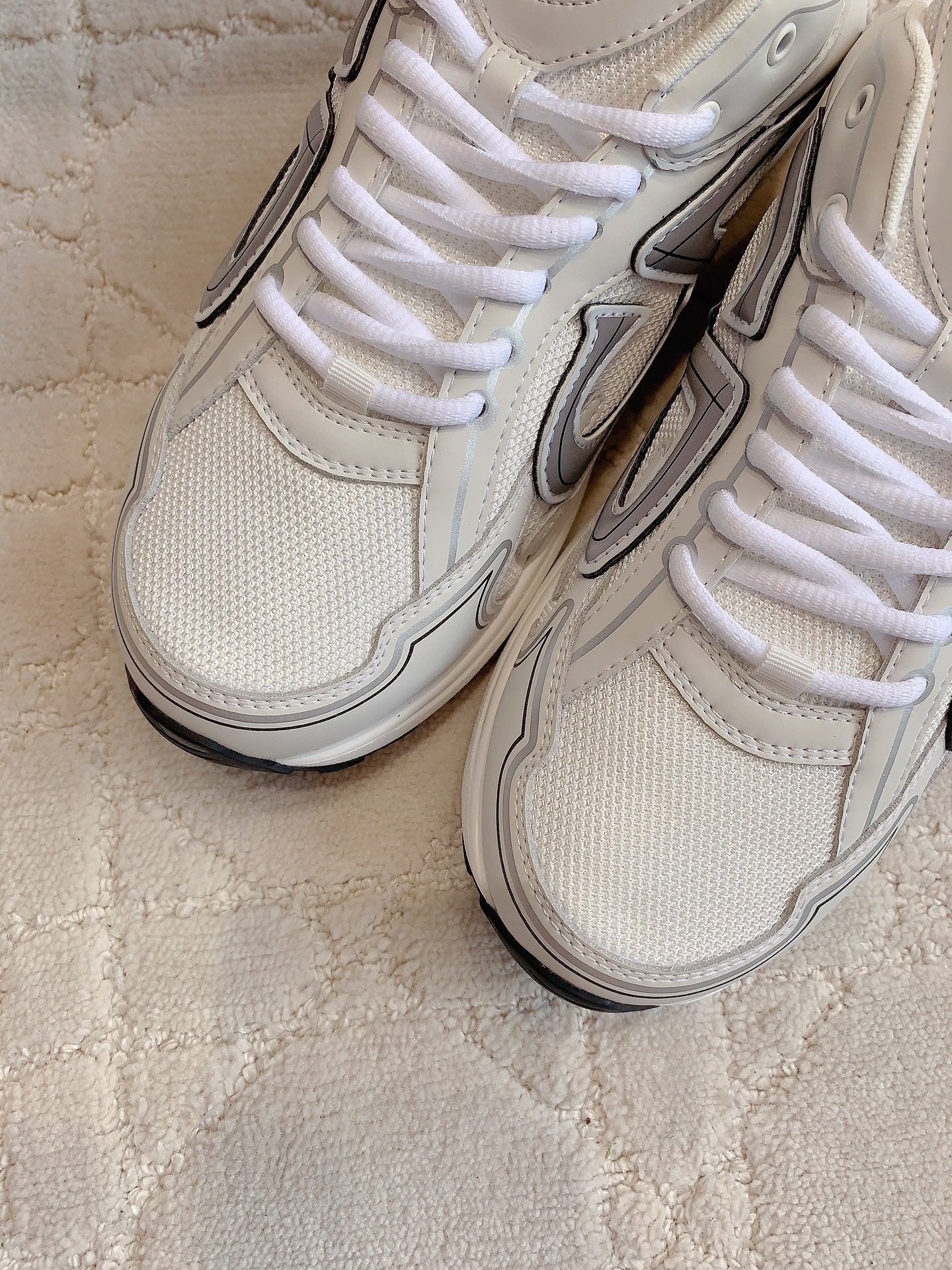 CD B30 Sneaker Milky Beige Mix Grey Black Polyester Mesh Fabric And Calfskin