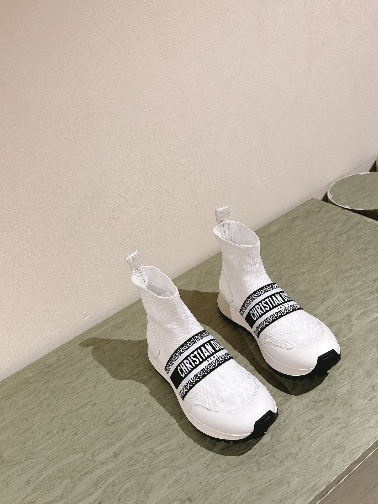 CD High-Top Sneaker 40mm White Stretch Wool And Lambskin