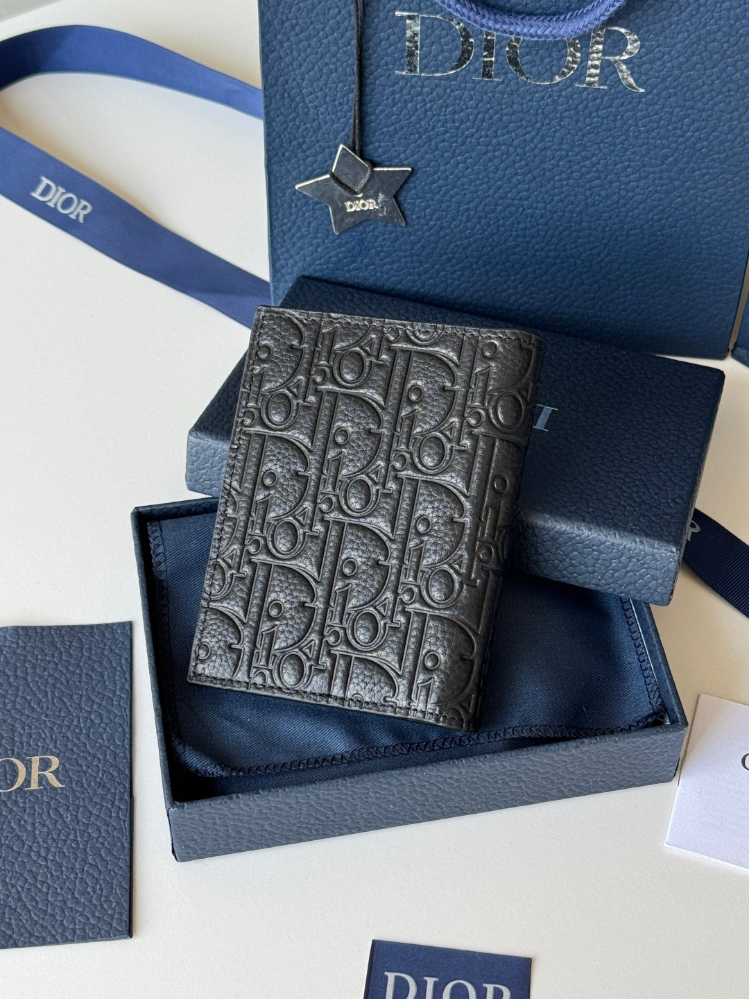 CD Oblique Passport Holder Black Jacquard Cowhide