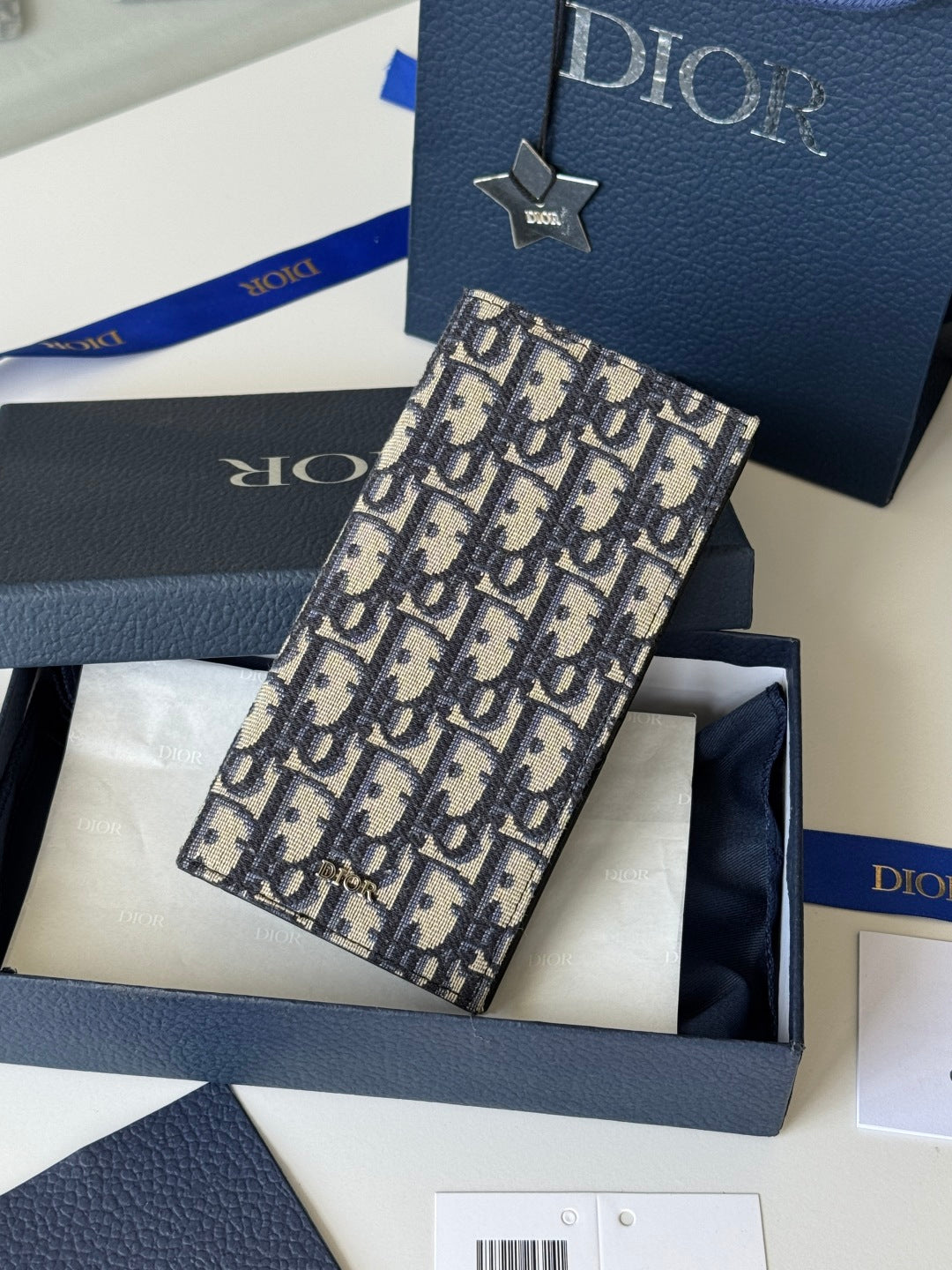 CD Long Vertical Wallet Beige Black Jacquard Cowhide
