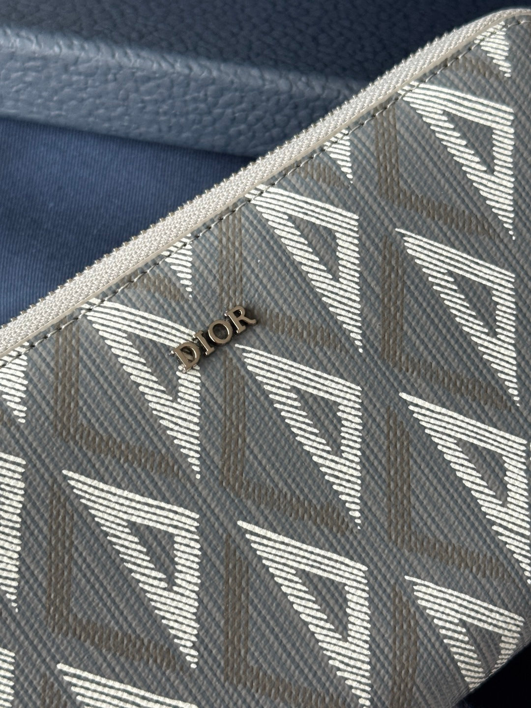 CD Diamond Zipped Long Wallet Grey White Canvas & Cowhide