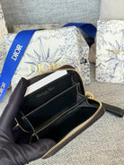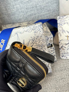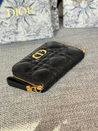 CD Logo Caro 11cm Compact Wallet Black Calfskin