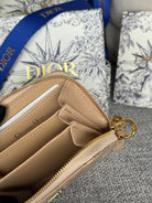 CD Logo Caro 11cm Compact Wallet Shiny Beige Calfskin