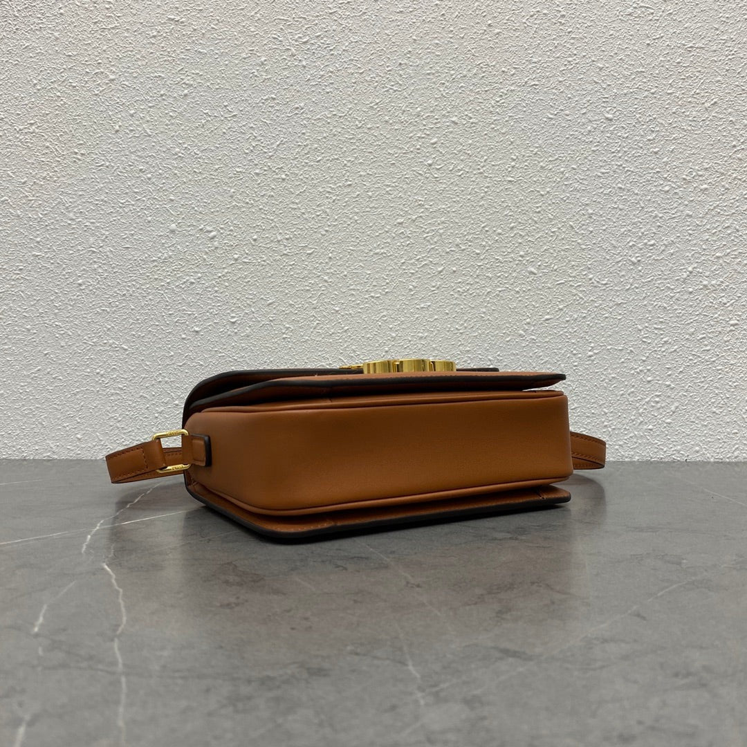 Celine 2025 Trio Flap Bag 22cm Brown Smooth Lambskin Leather