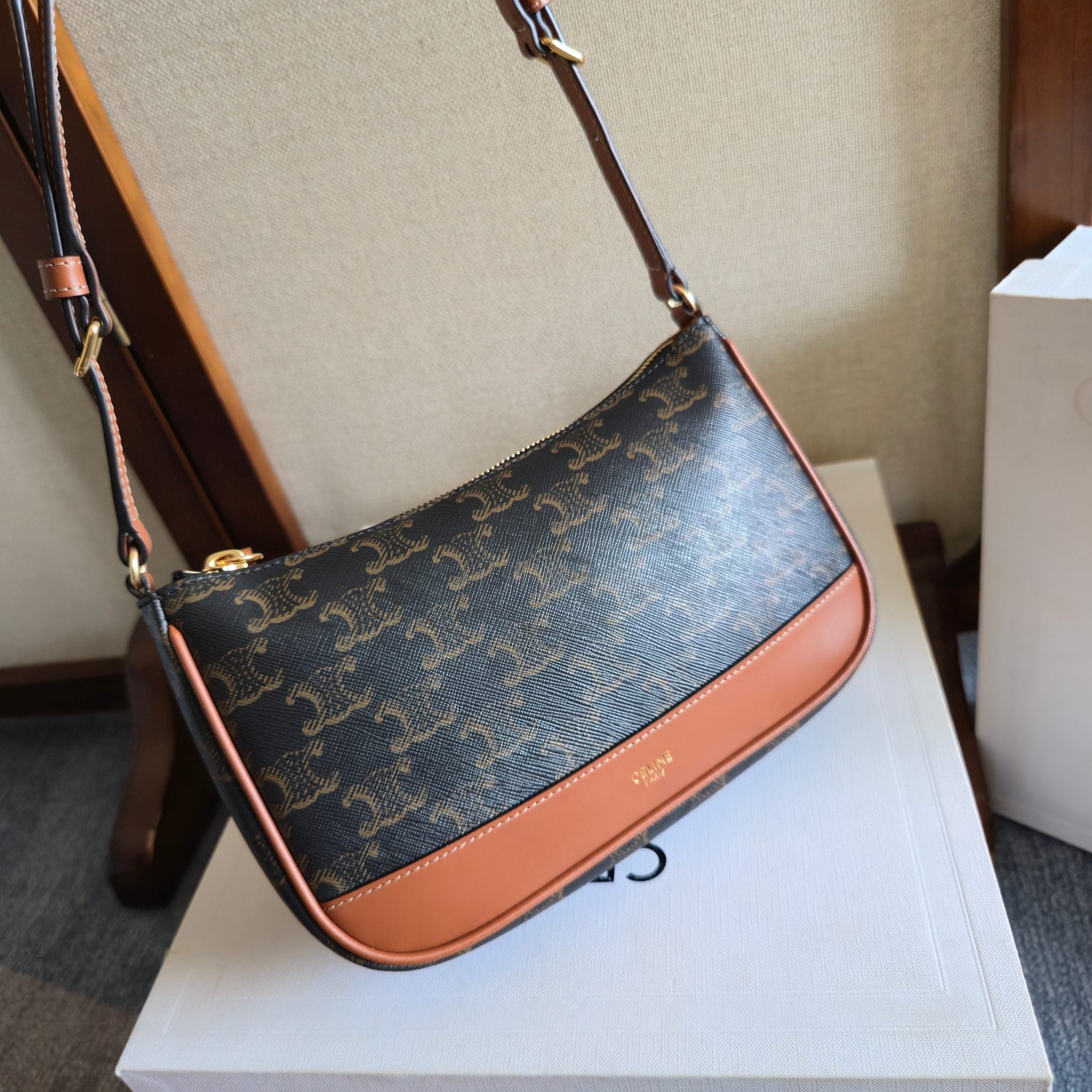 Celine Mini Ava Shoulder Bag Brown Black Triomphe Canvas