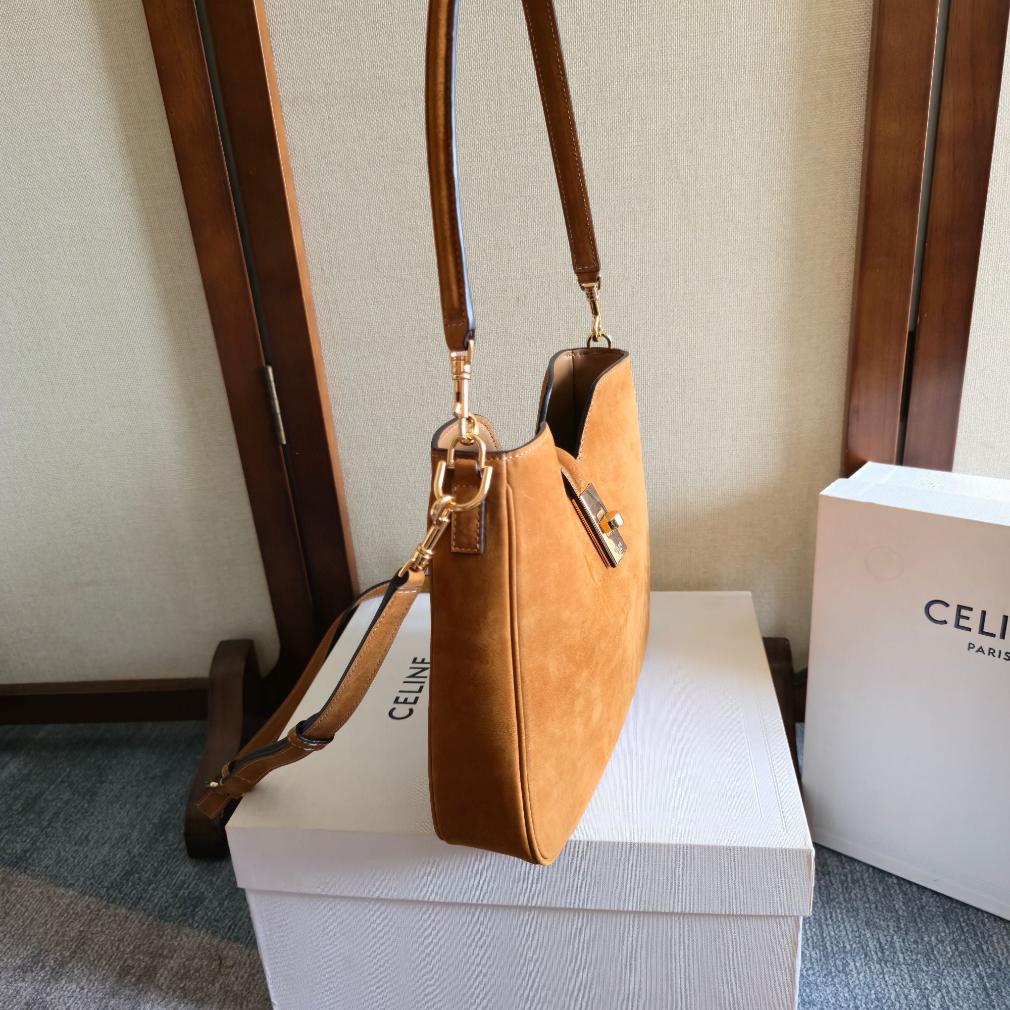 Celine Small Camille 16 Soft Bag Camel Nubuck Leather