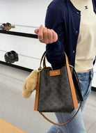 Celine Small Cube Bag Brown Triomphe Canvas Calfskin