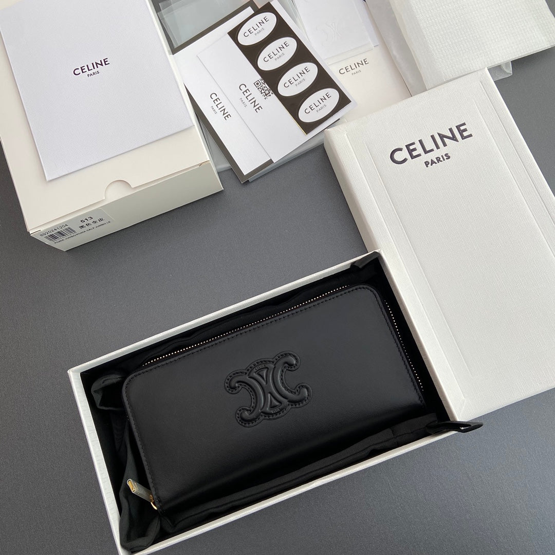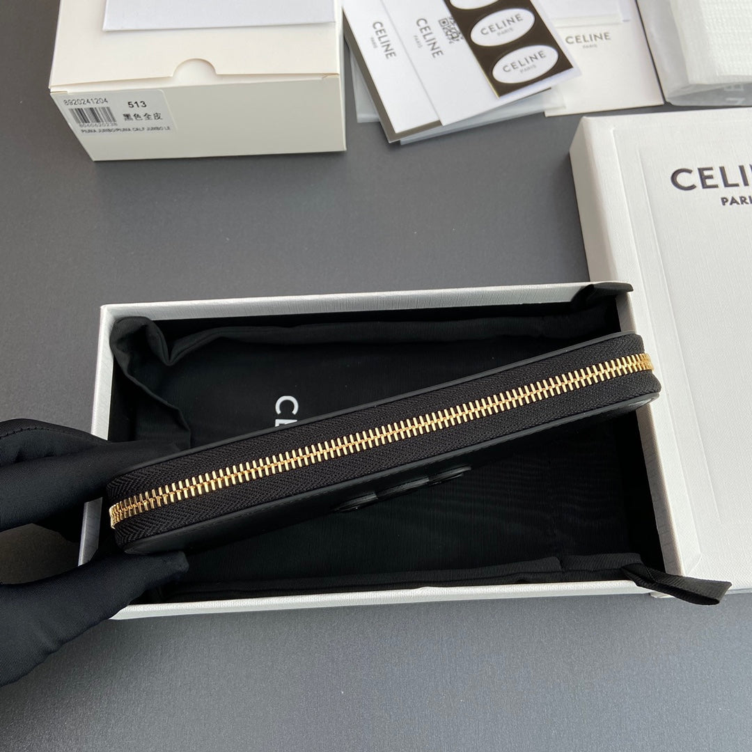 TRIOMPHE Long Zipper Closure Bag Black Shiny Cowhide