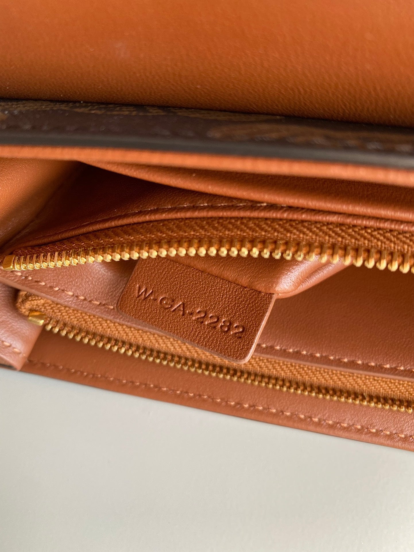 TRIPHOME 9 WALLET TWO-IN-ONE OLD FLOWER BROWN CALFSKIN