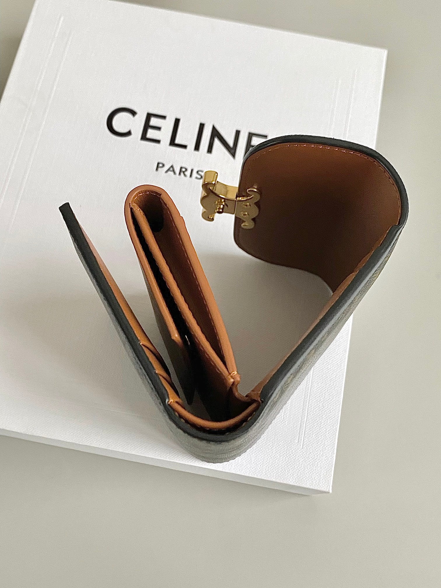 TRIPHOME 10 TRIFOLD WALLET CALFSKIN CINNAMON BROWN
