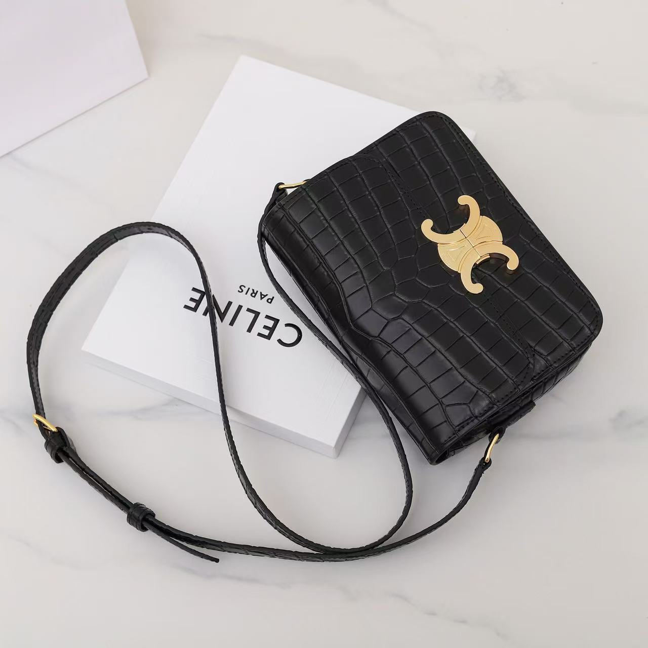 Celine Teen Triomphe Bag Black Crocodile Leather