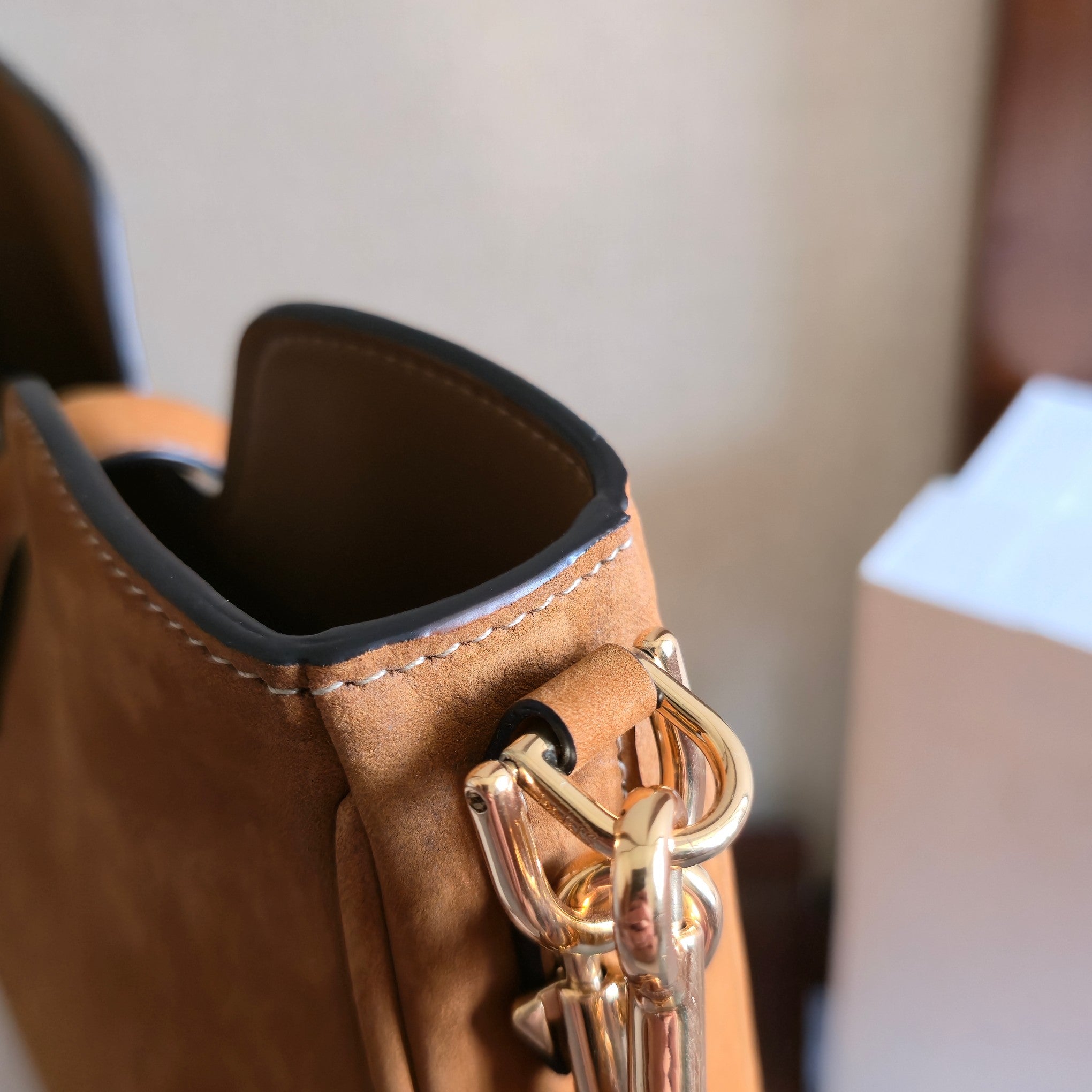 Celine 2025 Bucket Louise Bag 19cm Pecan Suede Calfskin 276314
