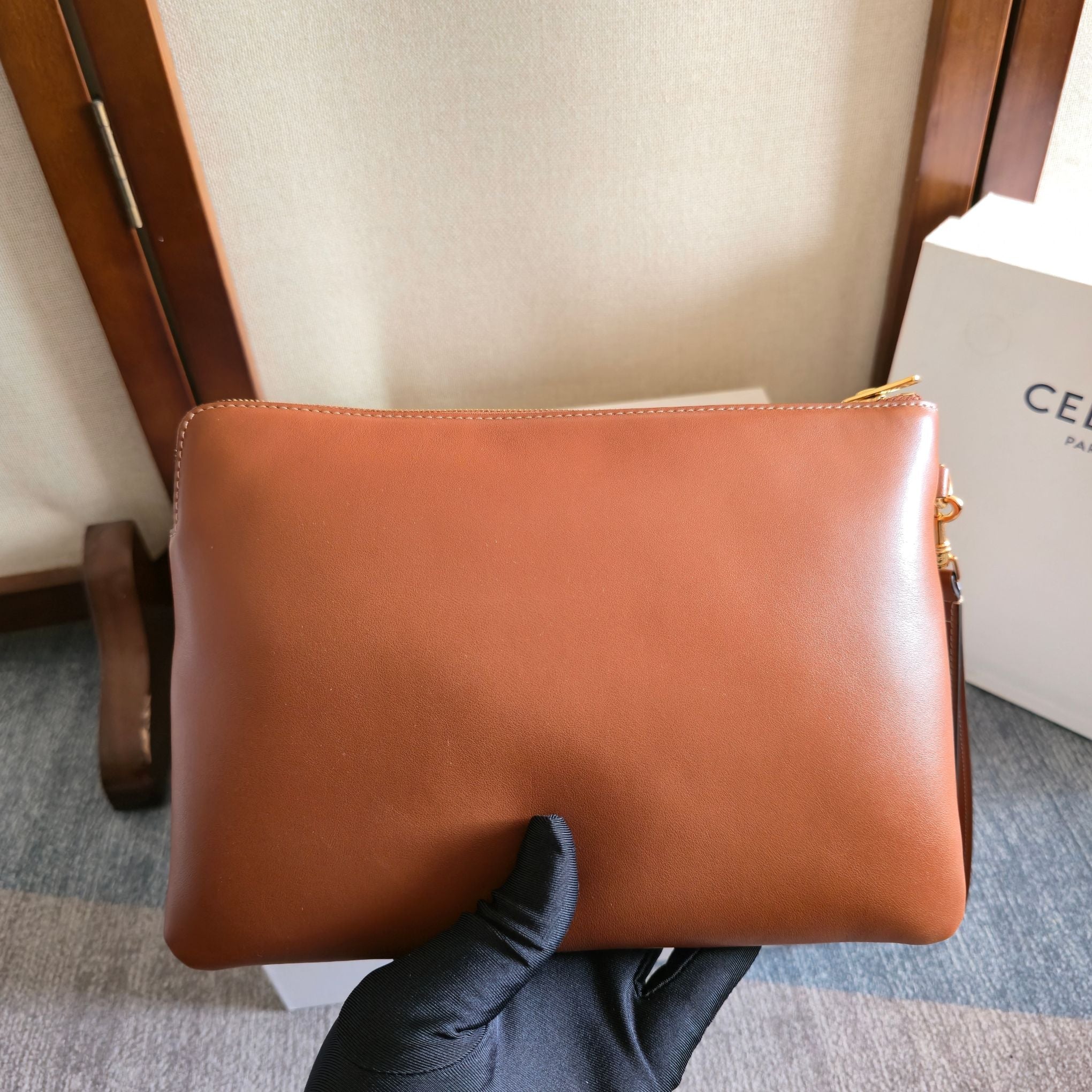 Celine Triomphe Wristlet Clutch Brown Leather