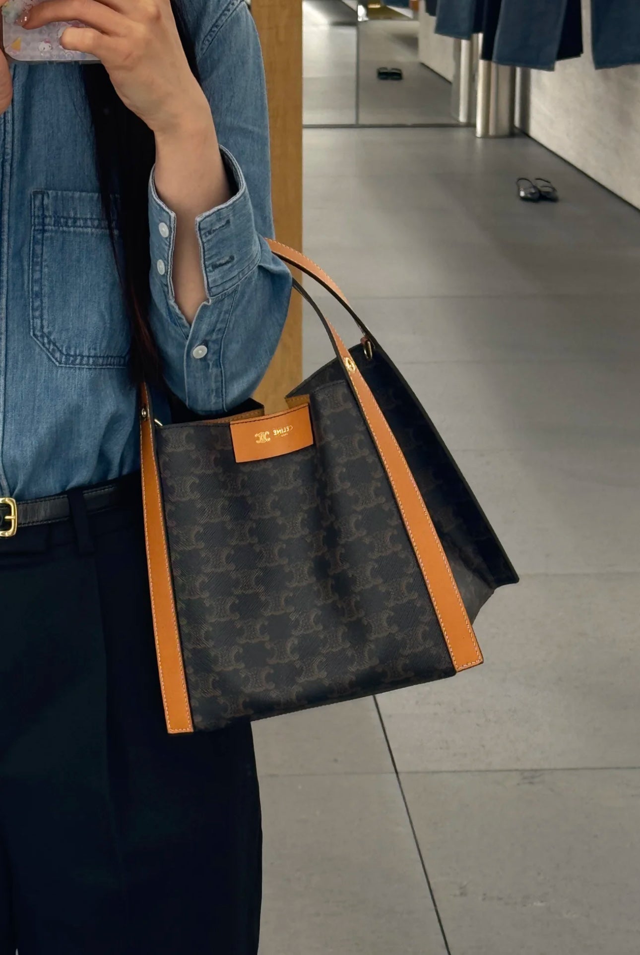 Celine Clara Bag 19 Black Brown Canvas Calfskin