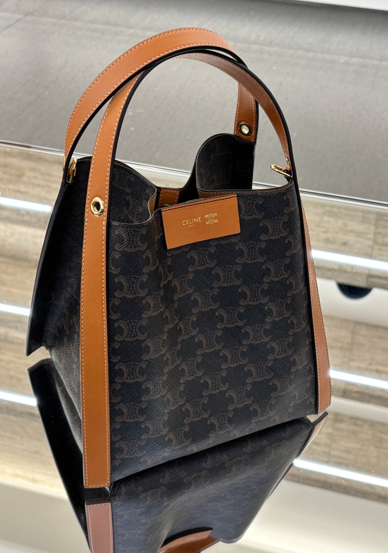 Celine Medium Ava Triomphe Shoulder Bag Brown Black Smooth Calfskin