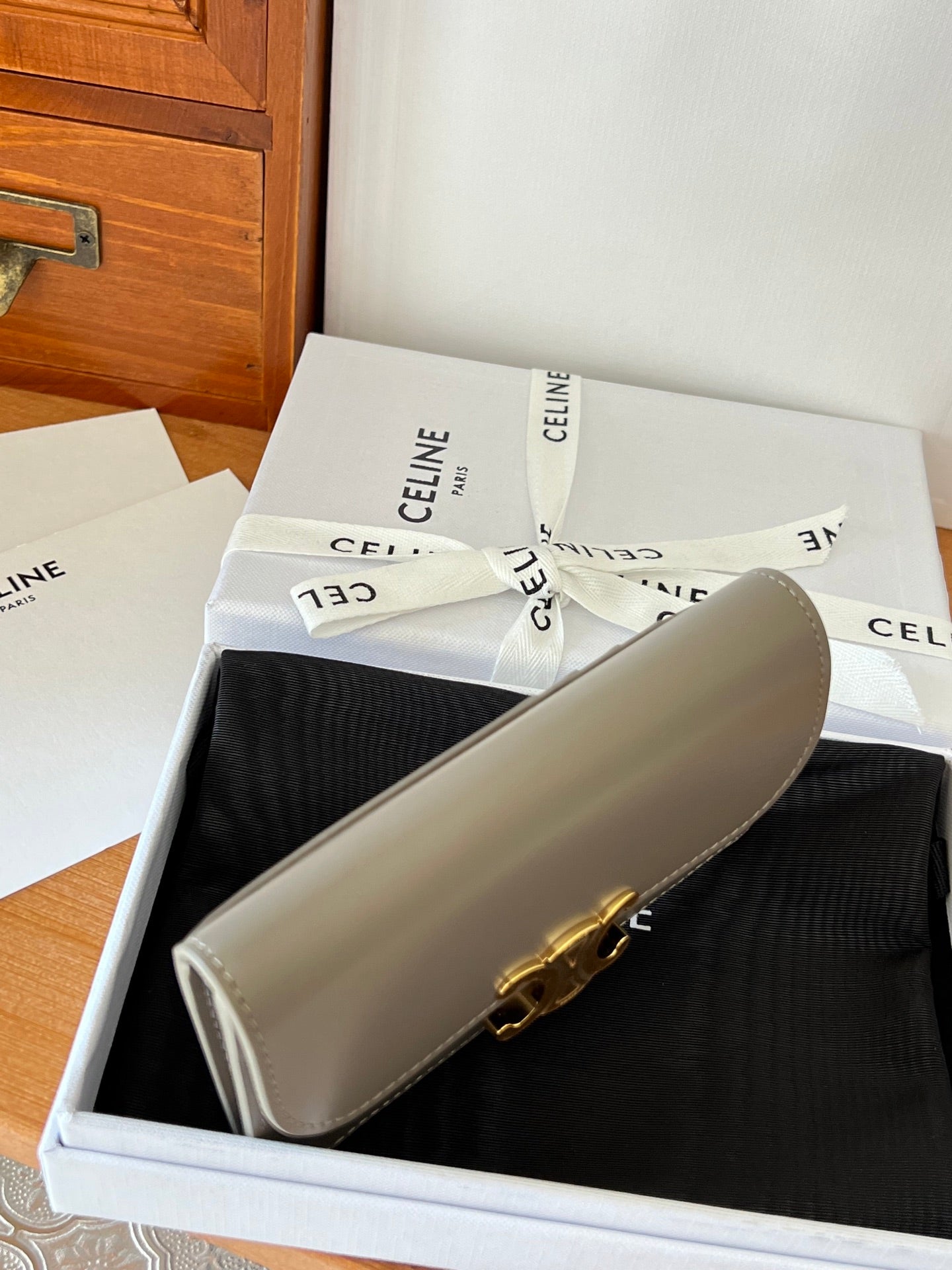 Celine Cuir Triomphe Logo-Printed Bag Beige Gold Cowhide