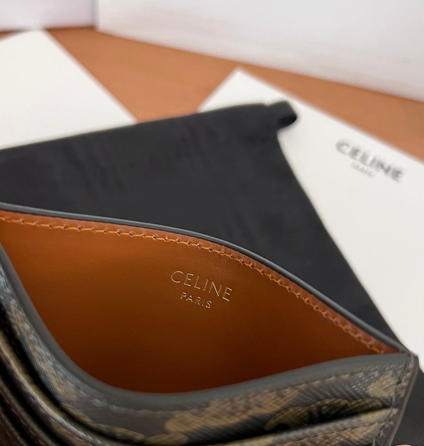 TRIOMPHE Business Card Holder Tan Cowhide GHW