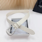 LARGE WESTERN 35 MM BELT WHITE CALFSKIN SILVER HARDWARE