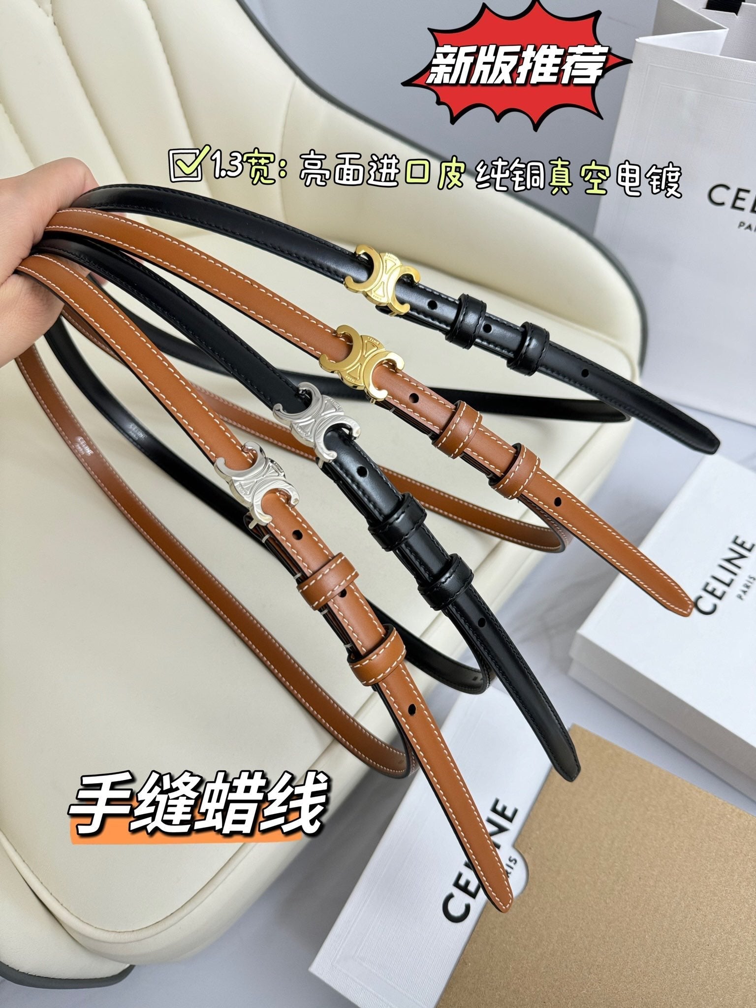 MINI TRIOMPHE BELT 13 MM BLACK LEATHER SILVER HARDWARE