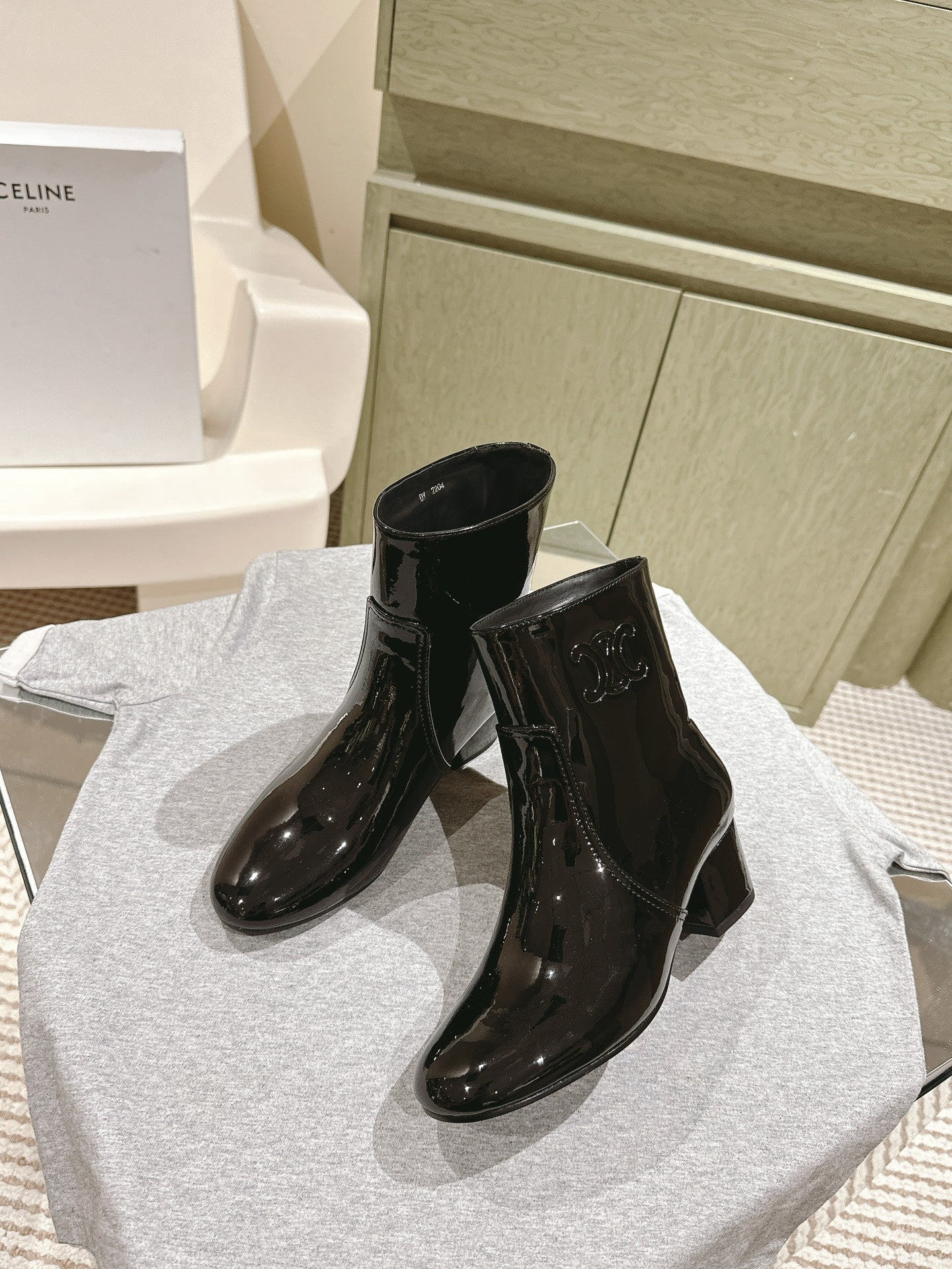 CELINE Les Bottes Triomphe Zipped Boot Black Patent Calfskin 452697