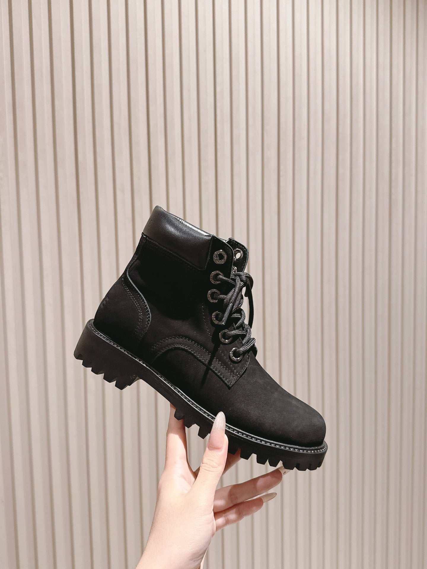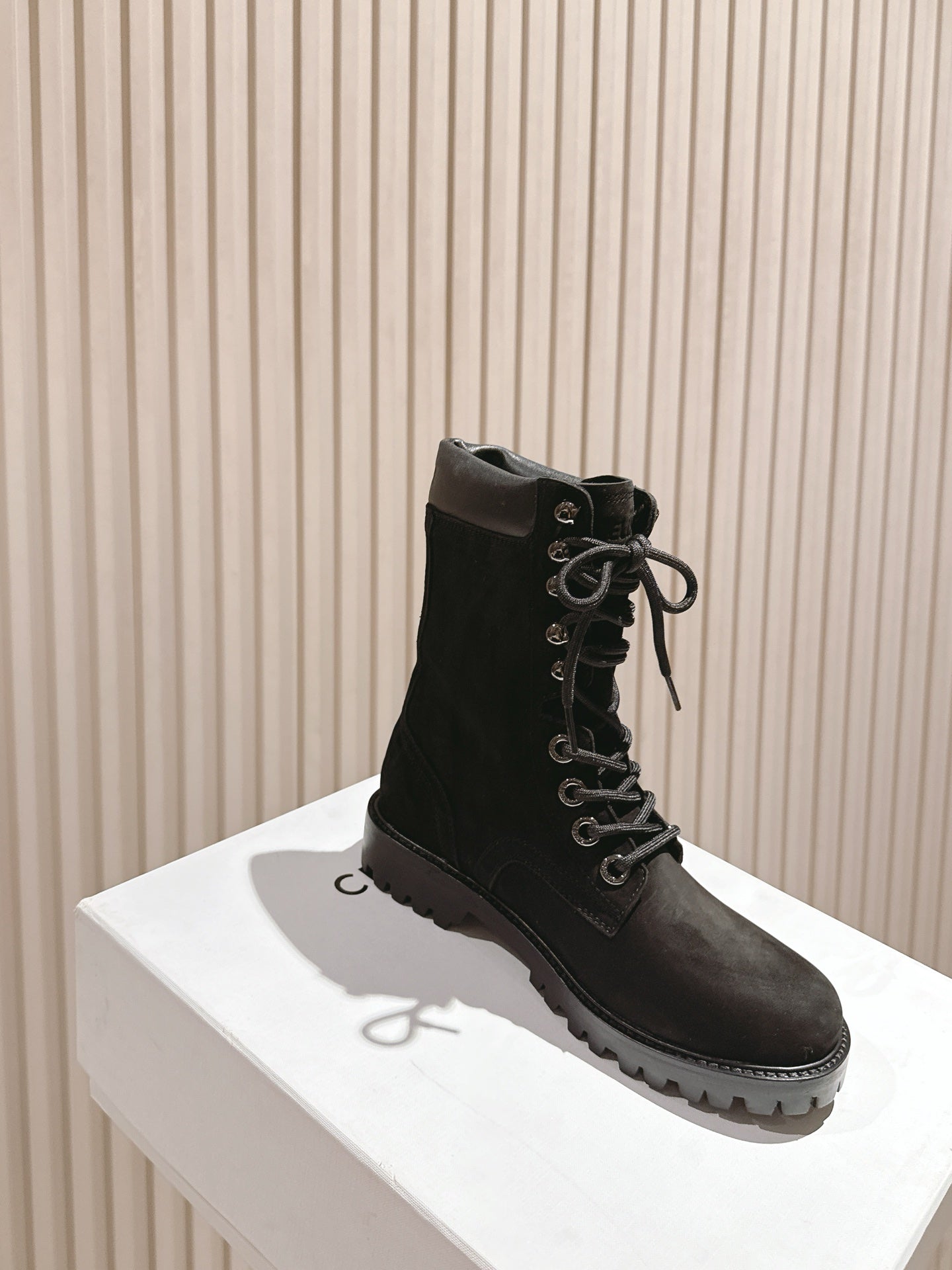 Celine 25 Bulky Lace-up Boot Black Suede 554011