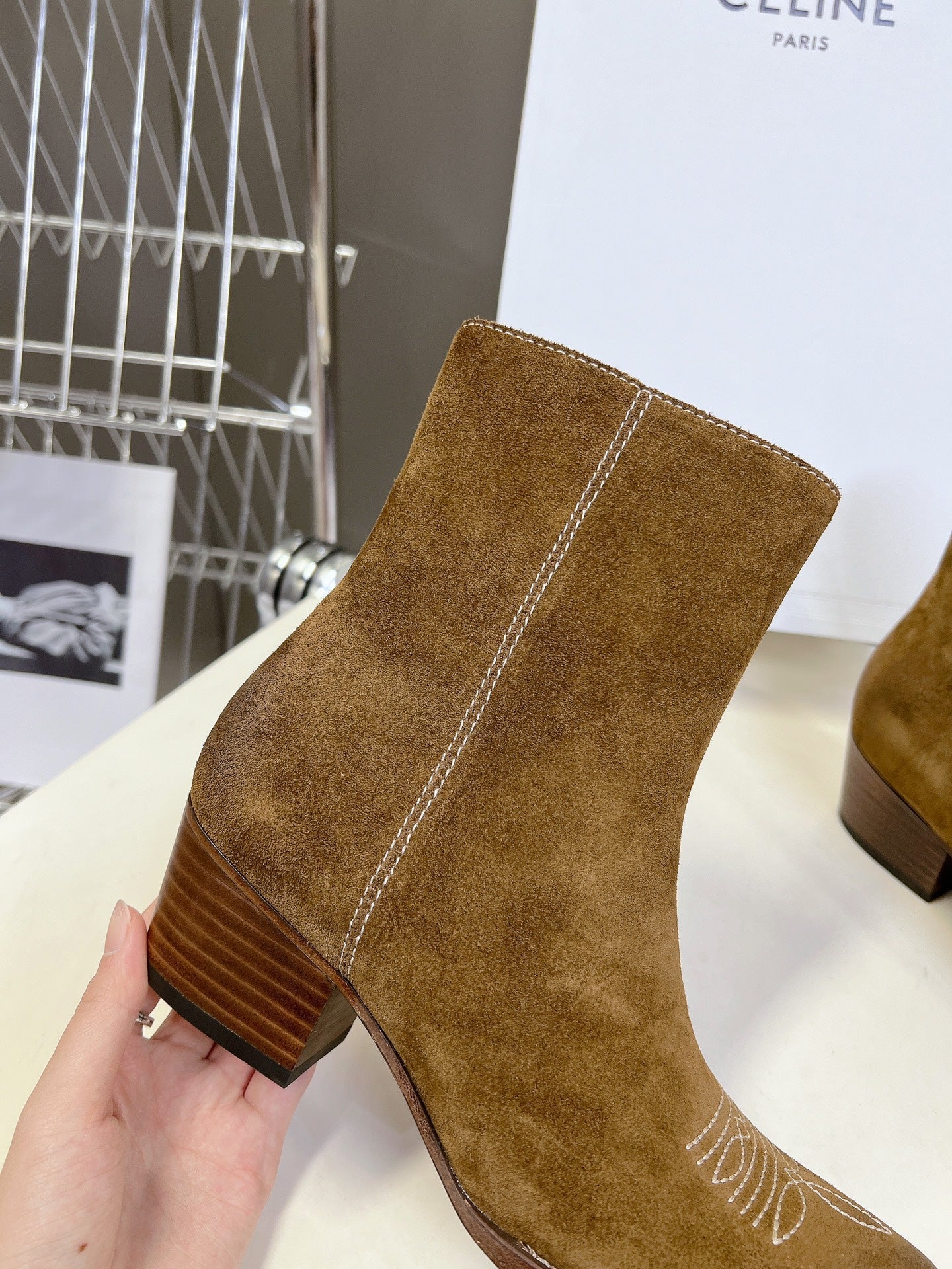 CELINE 25 cowboy boots light brown suede 434411