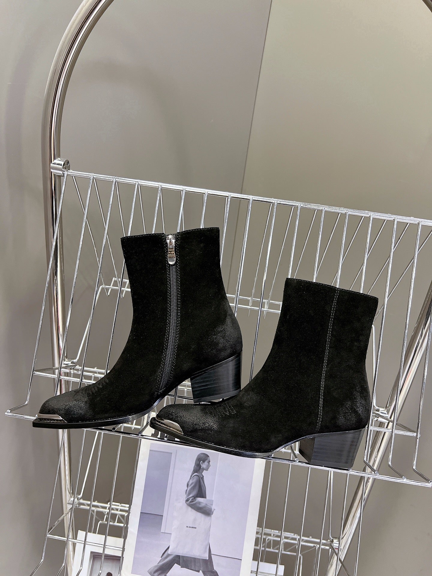 Celin Spring Runway Ankle Boots Black Fur Suede 567511