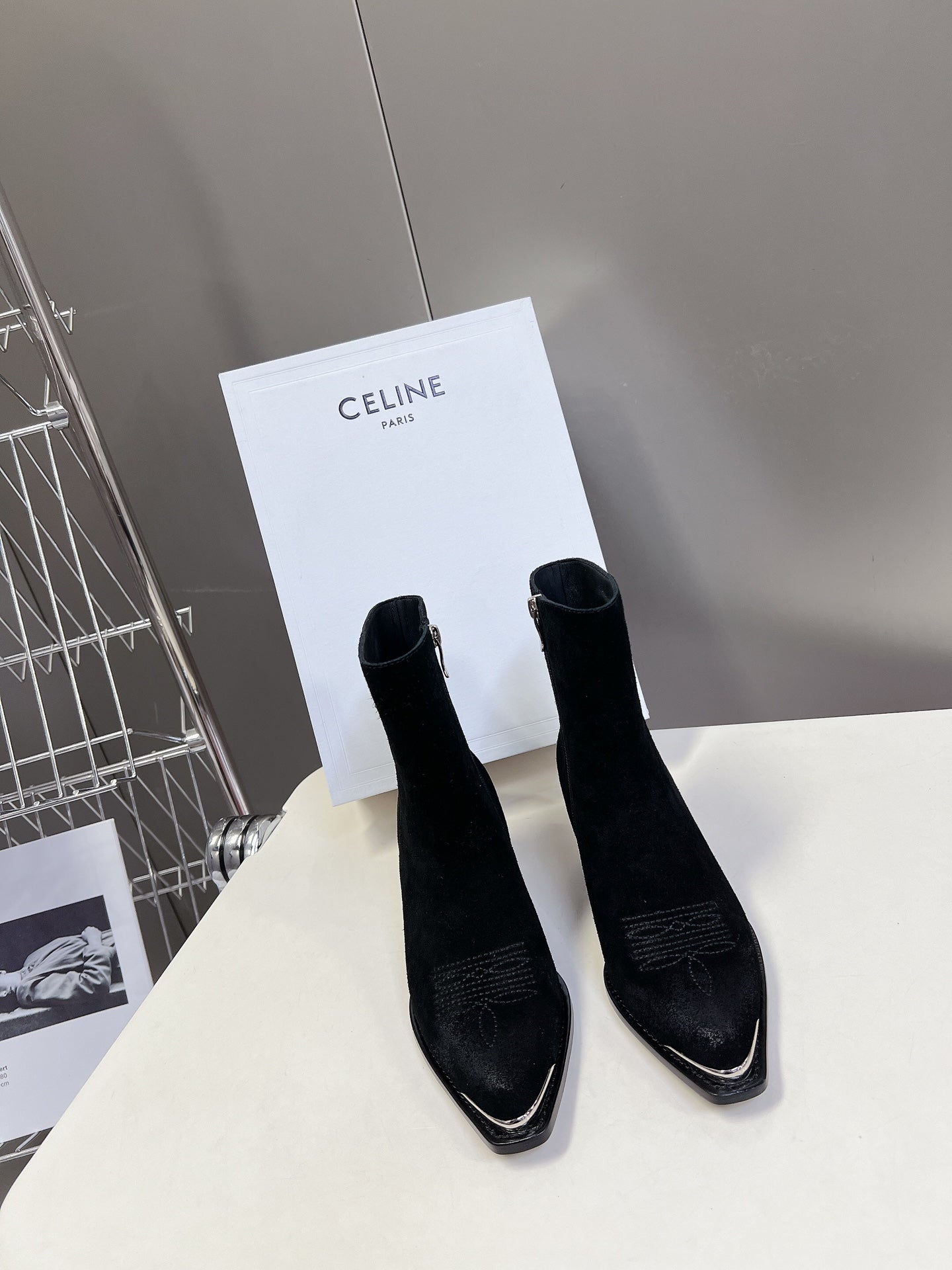 CELINE Ankle Boots Black Suede 433389