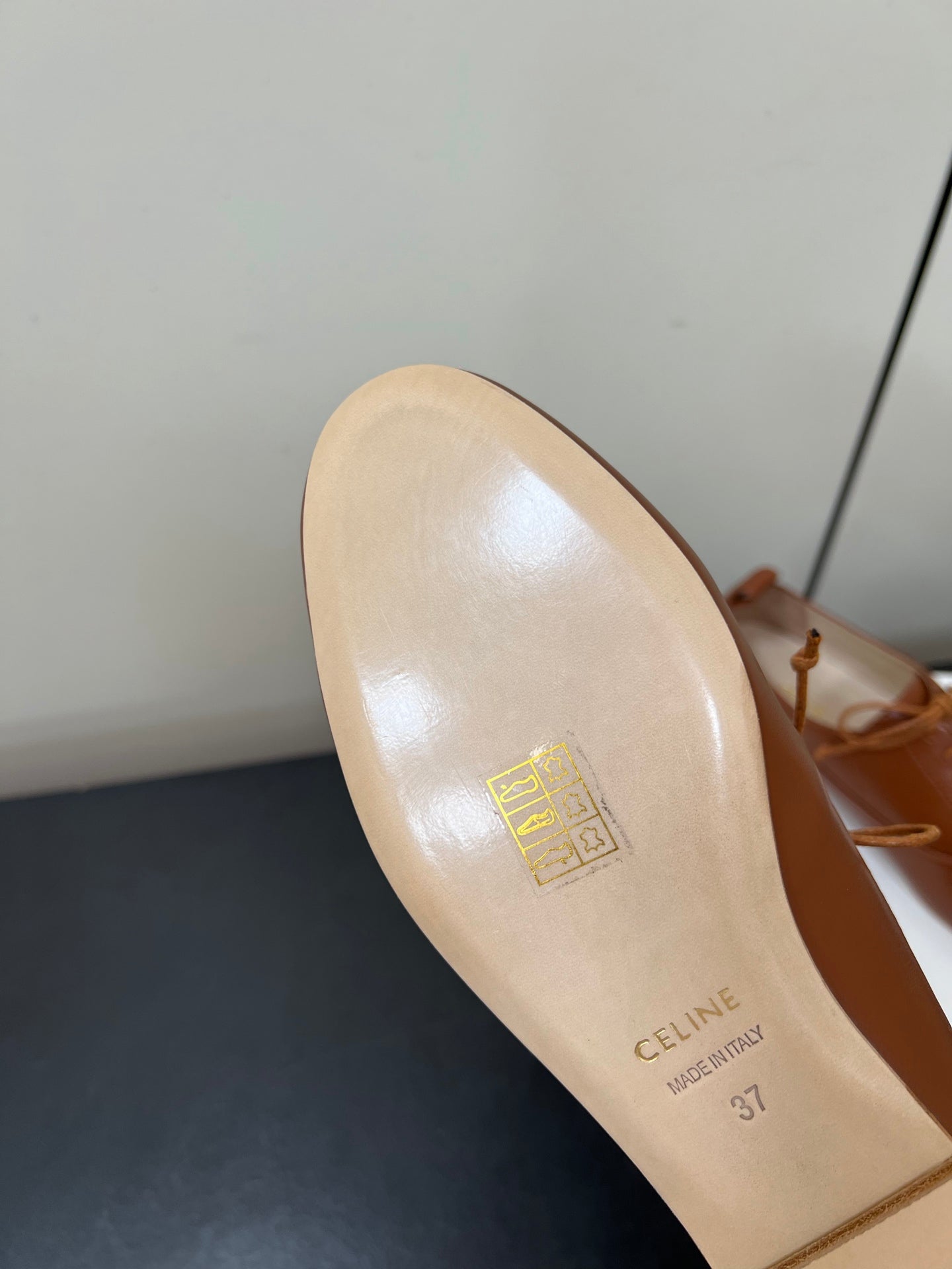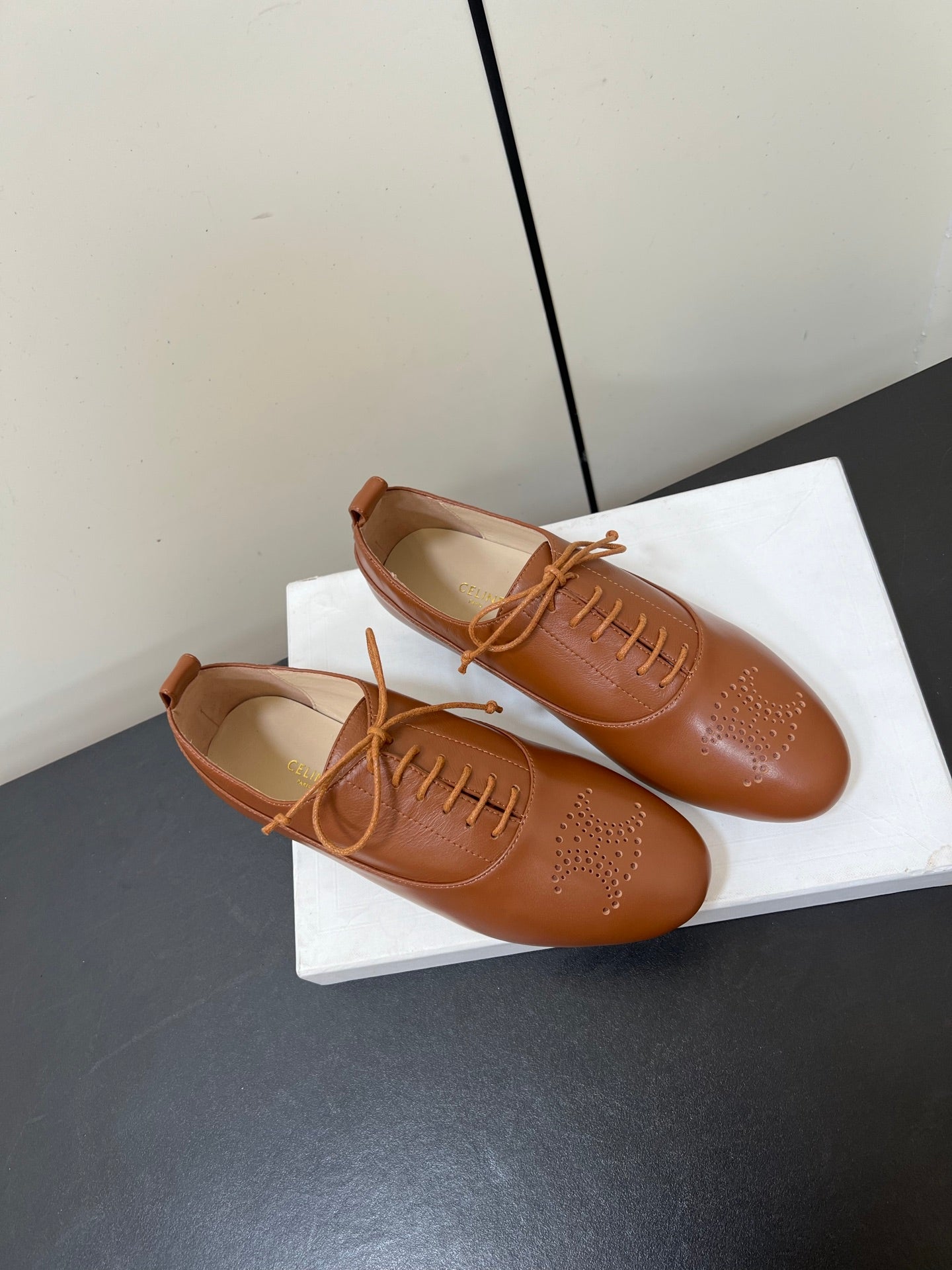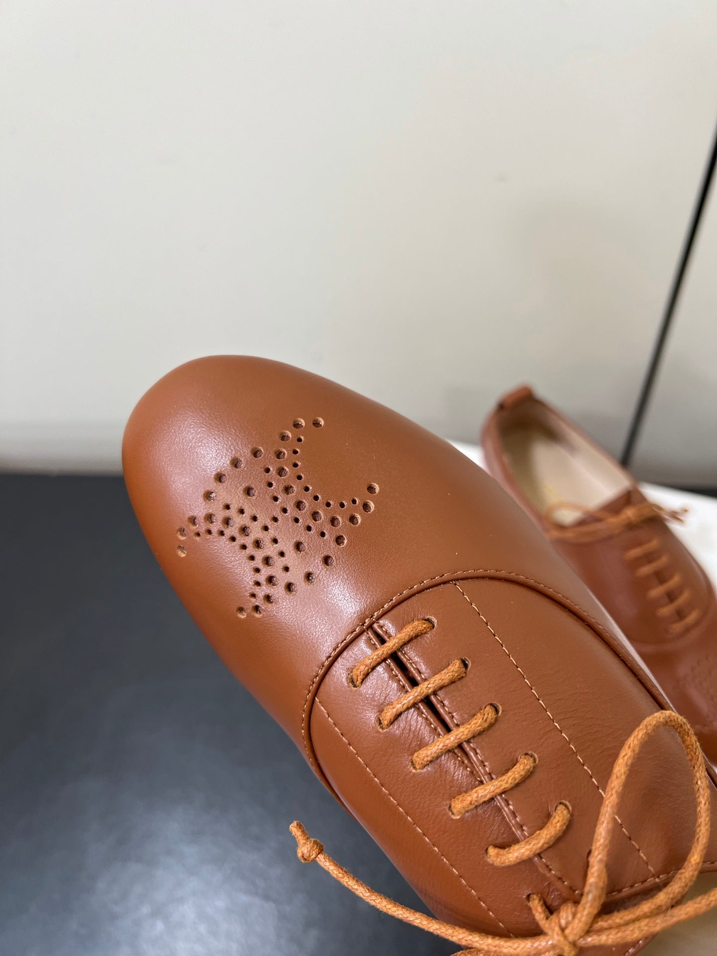 Celine 25 Lise Perforated Triomphe Richelieu Shoe Brown Lambskin 619646