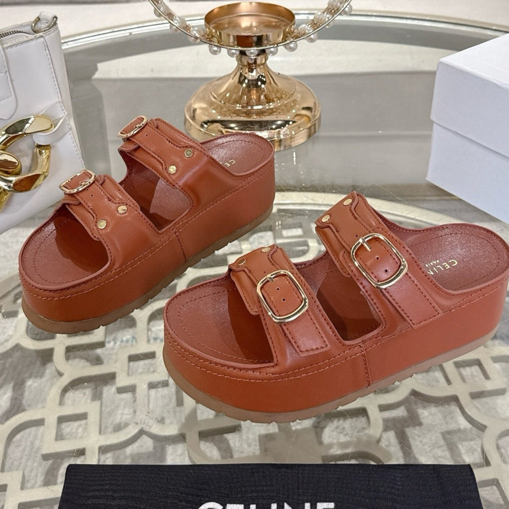 Celine Arc de Triomphe slippers Brown Sheepskin