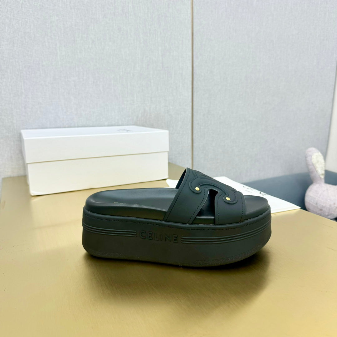 Celine Platform Slide Black Leather 238139