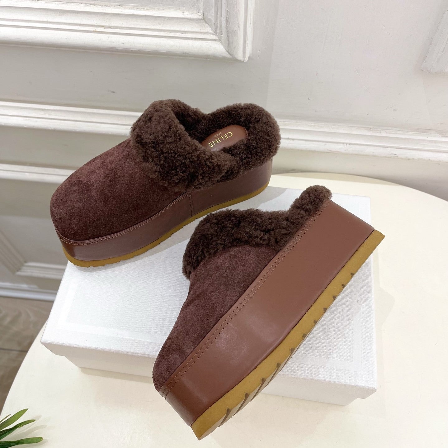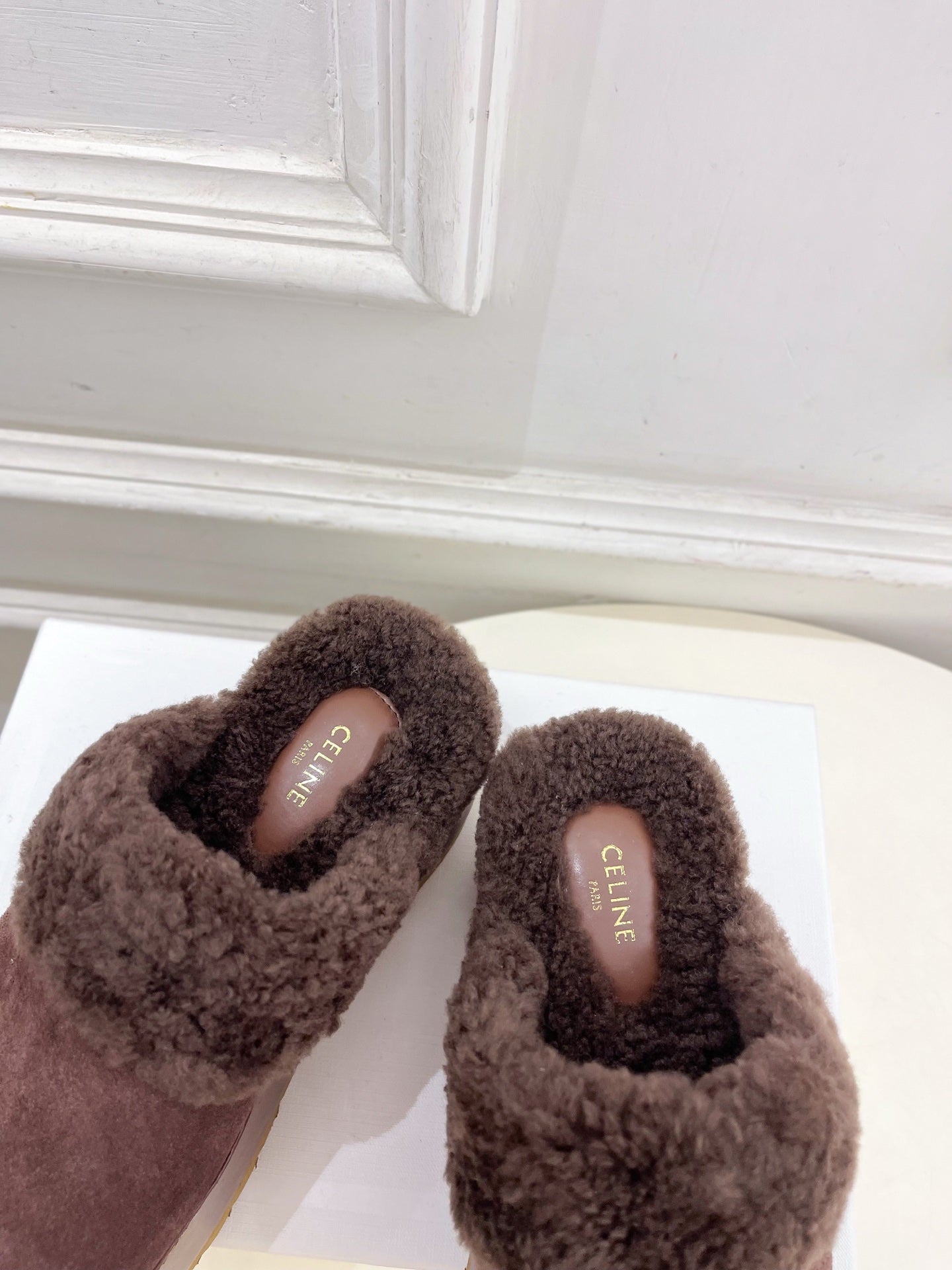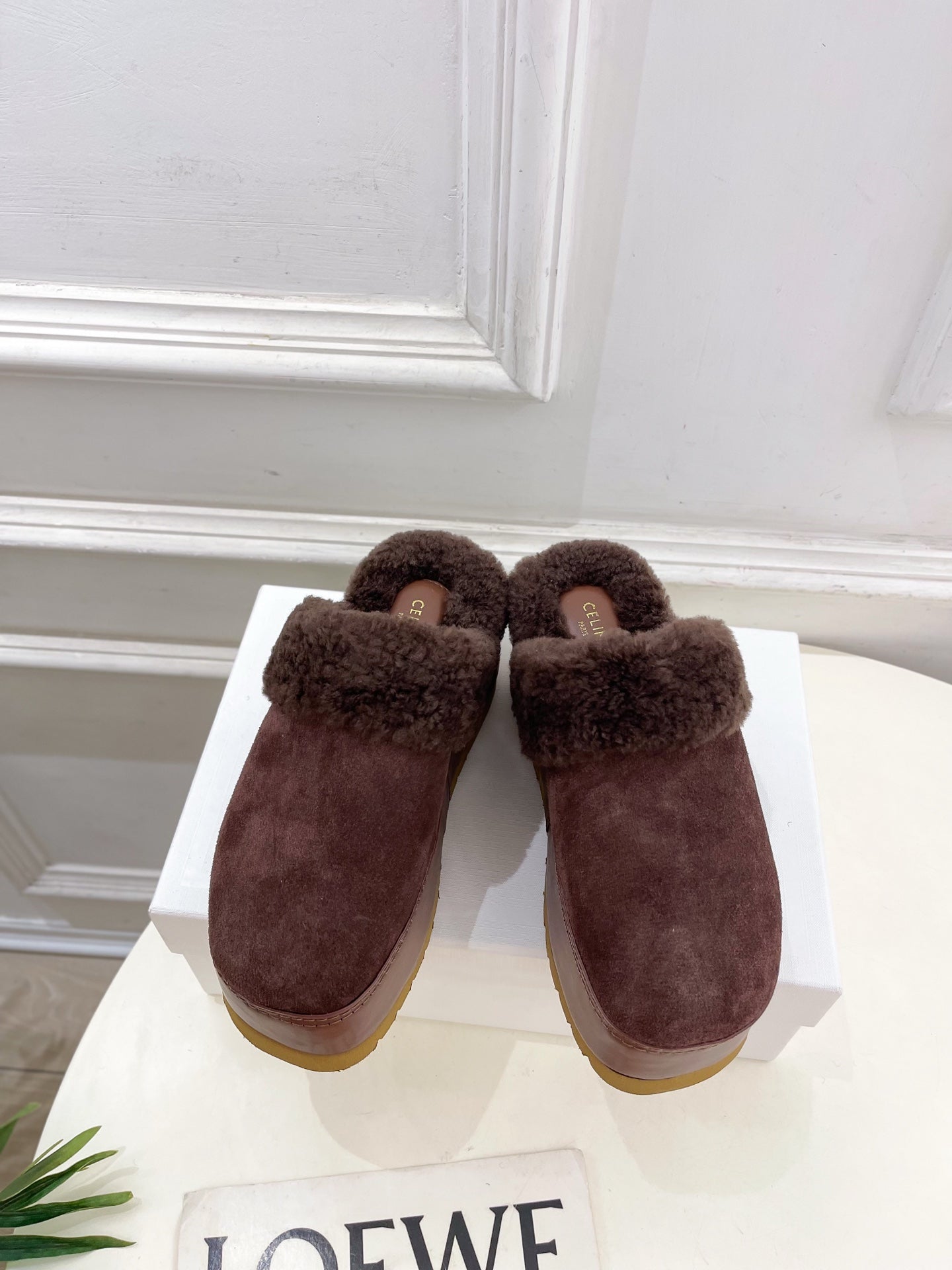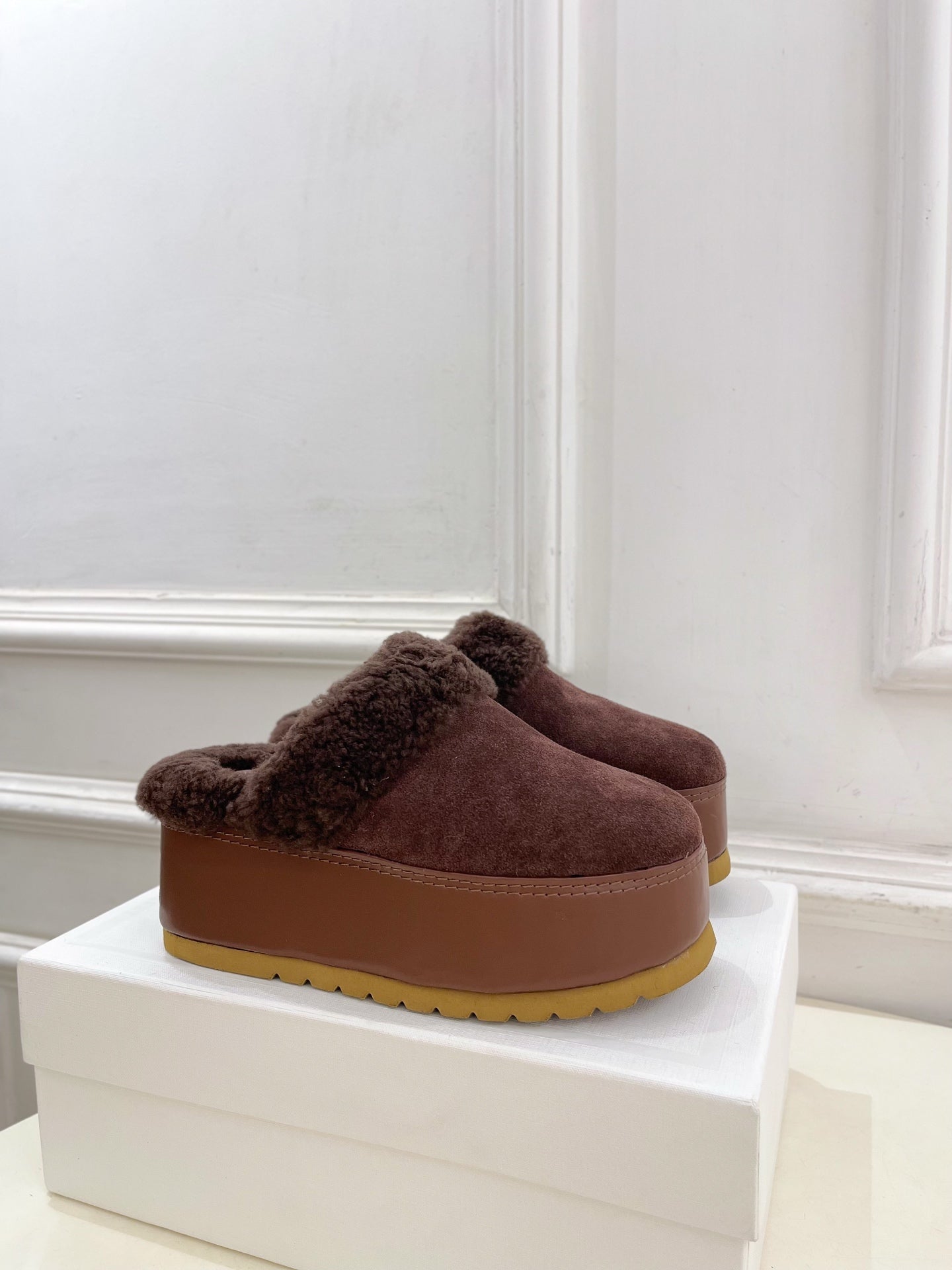 CL 25s Dana Wedge Mule 80mm Reddish Brown Suede Calfskin & Shearling