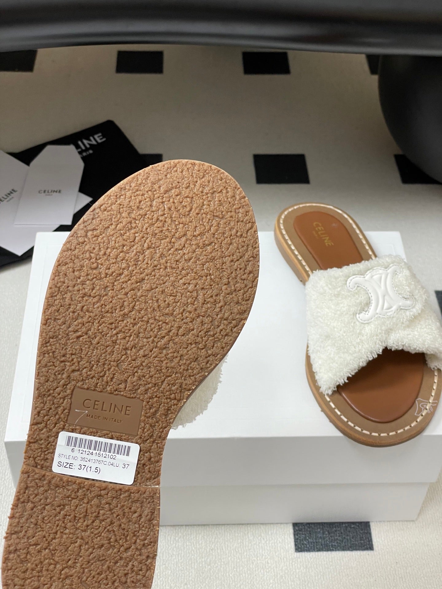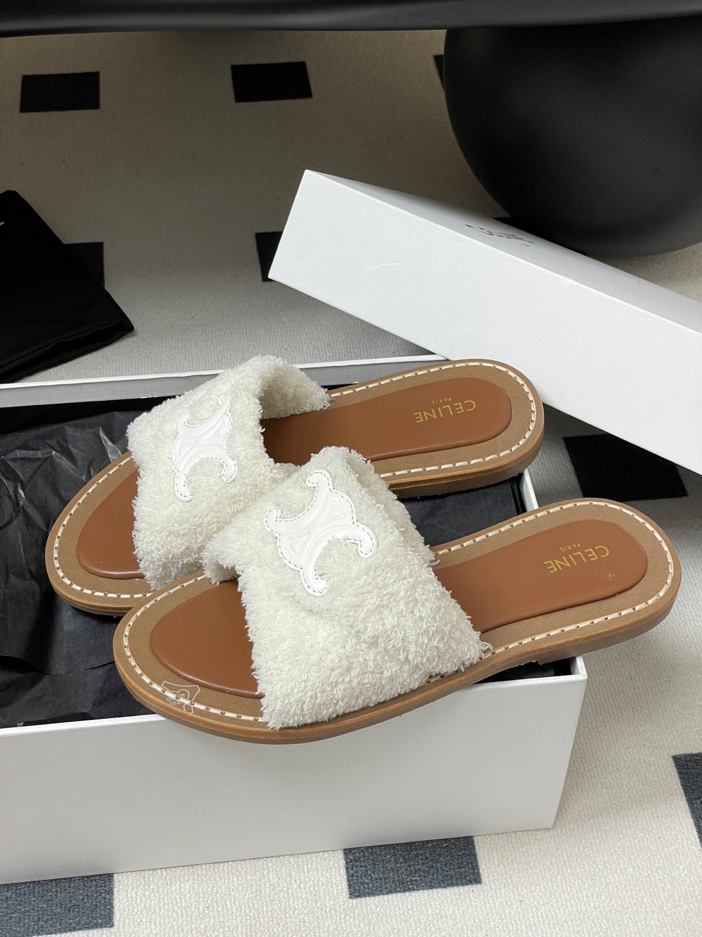 CL 25s Lympia Twisted Sandal White Brown Sheepskin Plush Cloth 416657