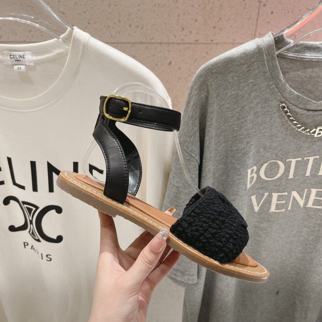 LYMPIA SANDAL IN TRIOMPHE MACCRAMÉ COTTON & CALFSKIN BLACK