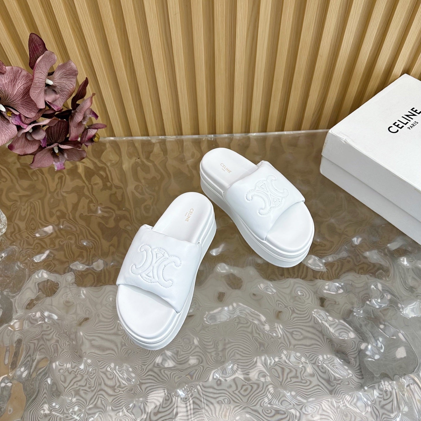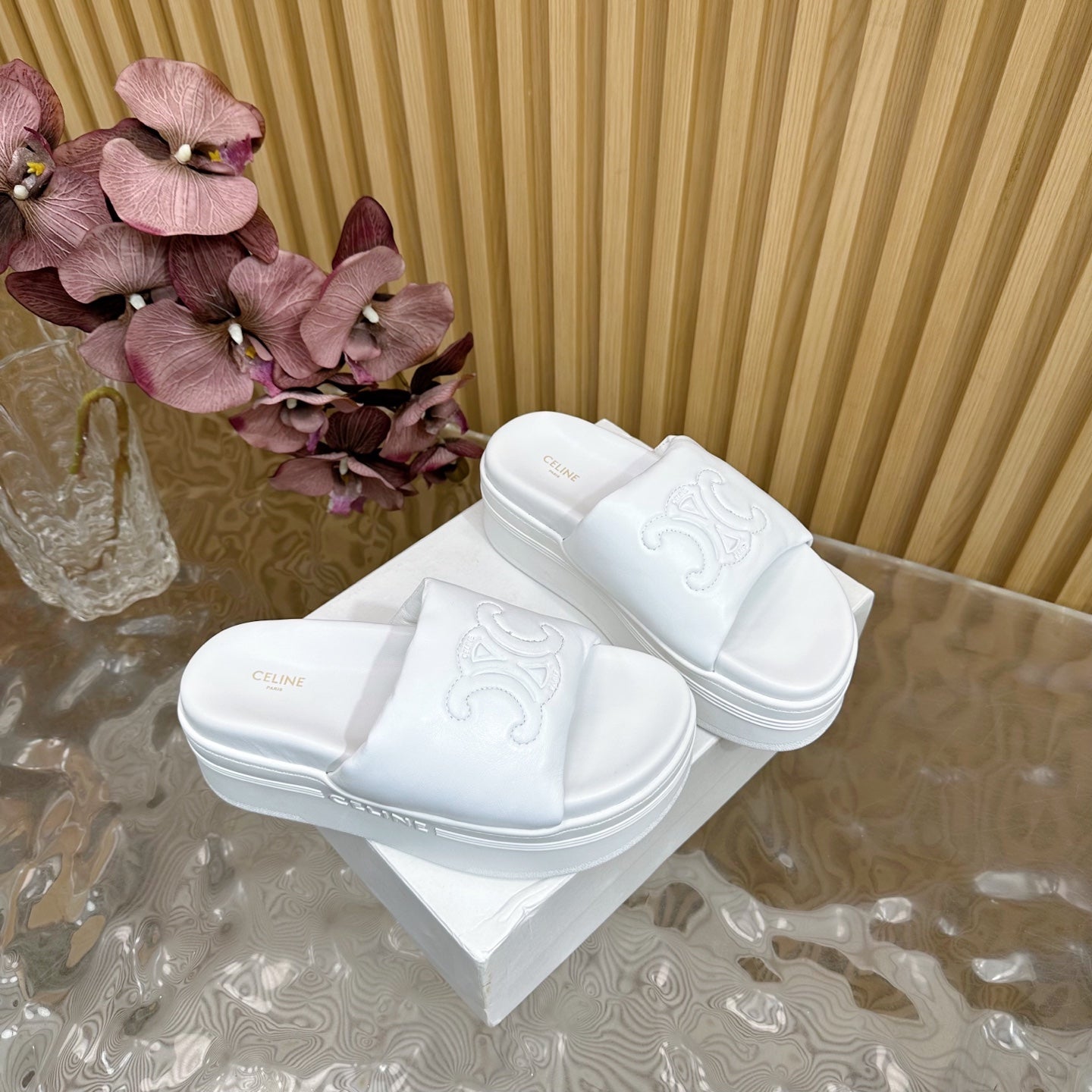 CELINE 25 Sline Sandal White Sheepskin 285911