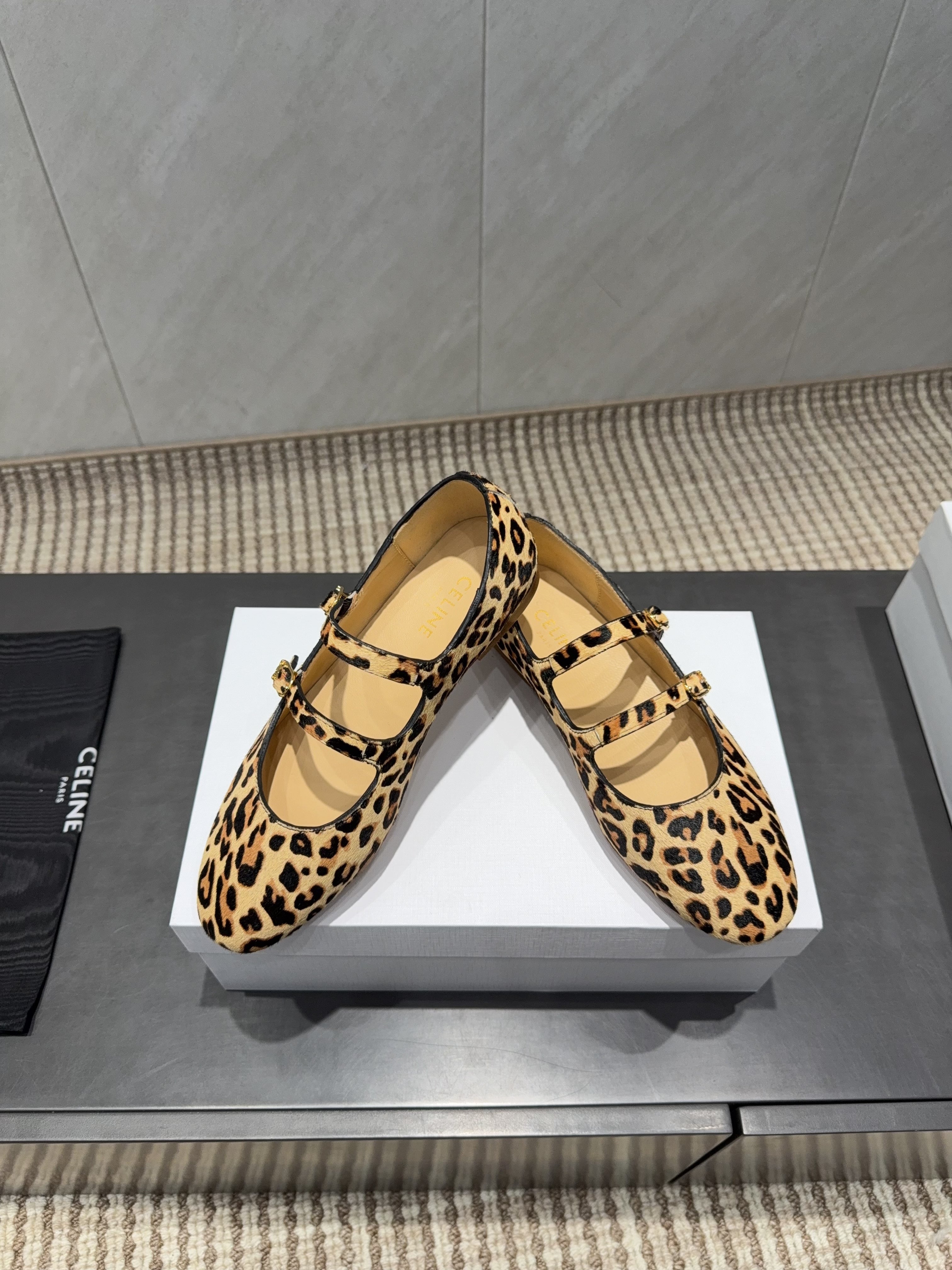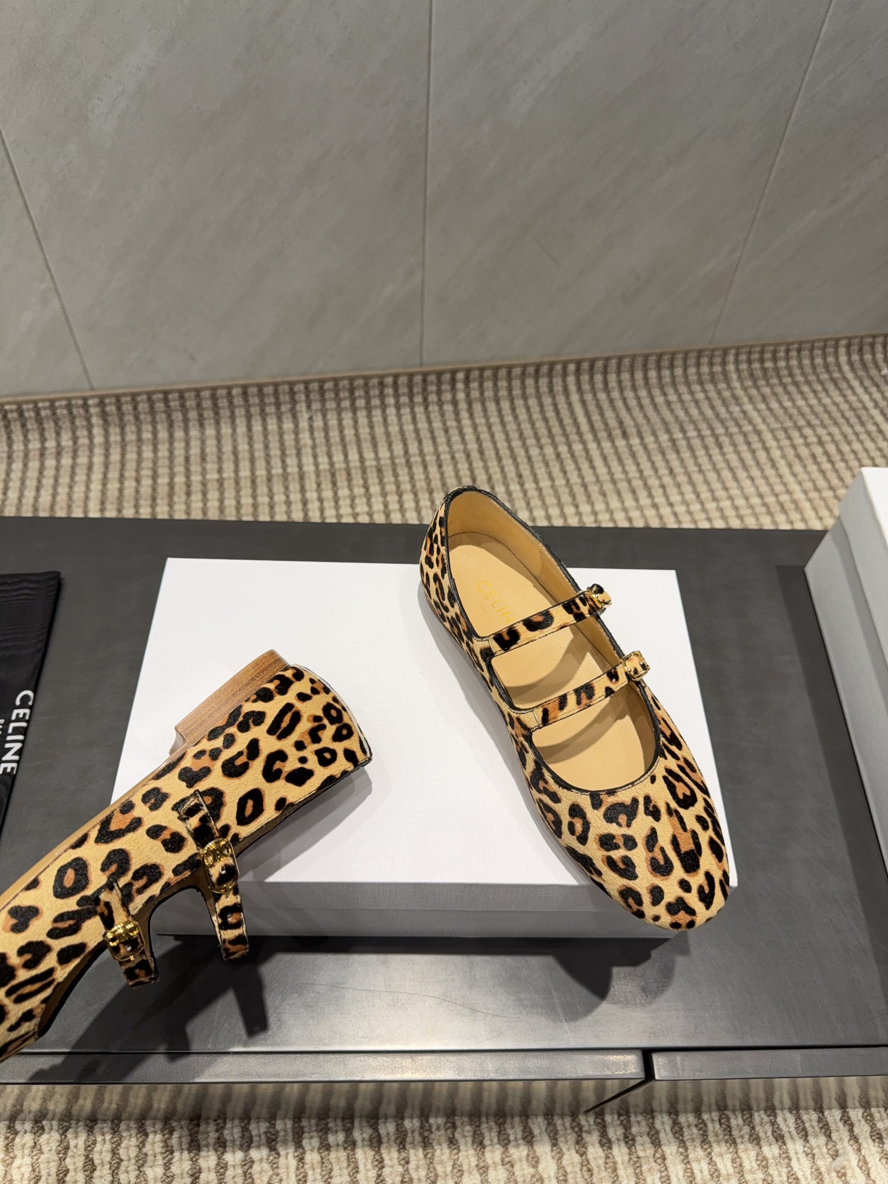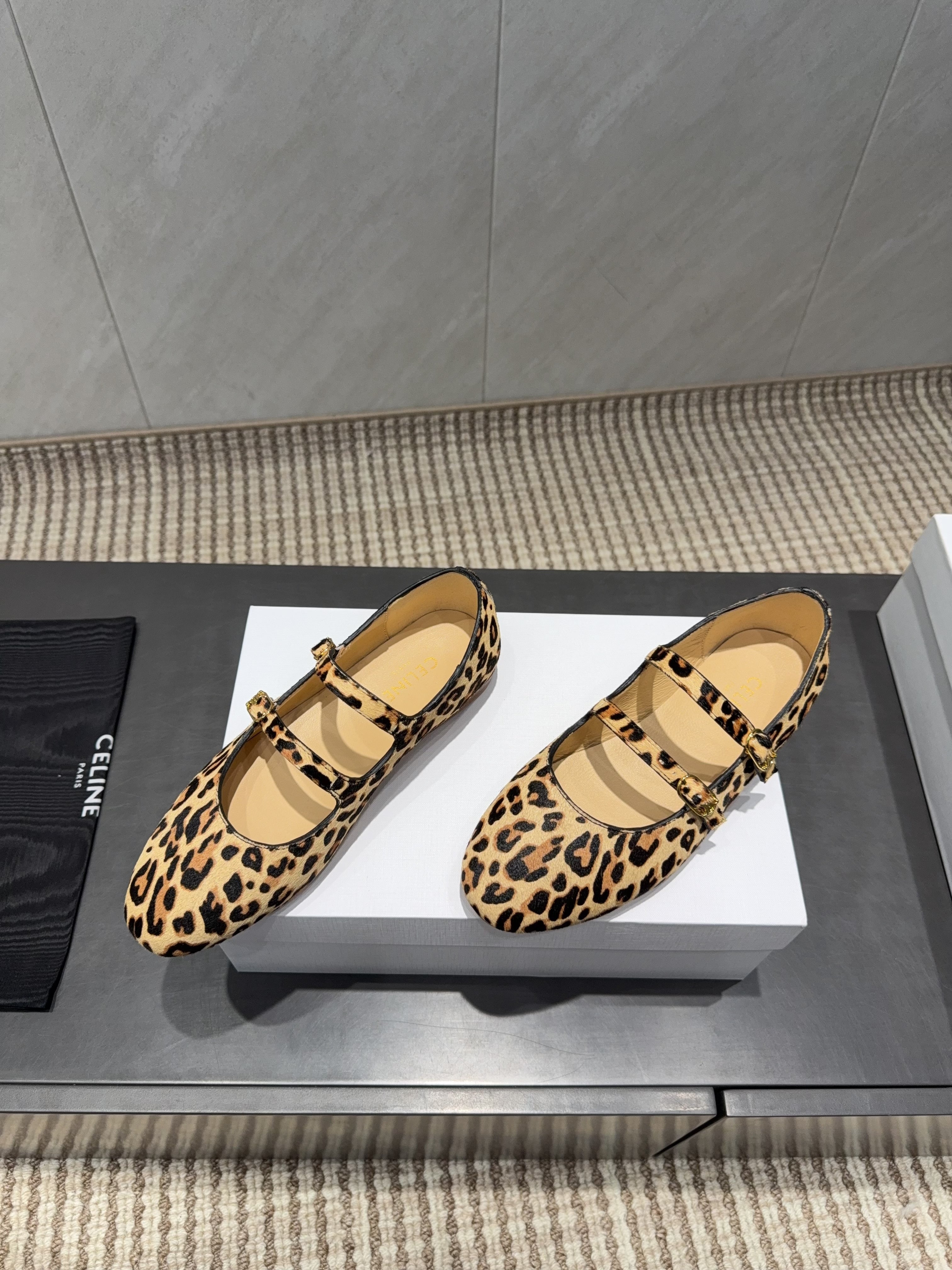 Celine 26 Ballet Flats Leopard Print Suede 614466