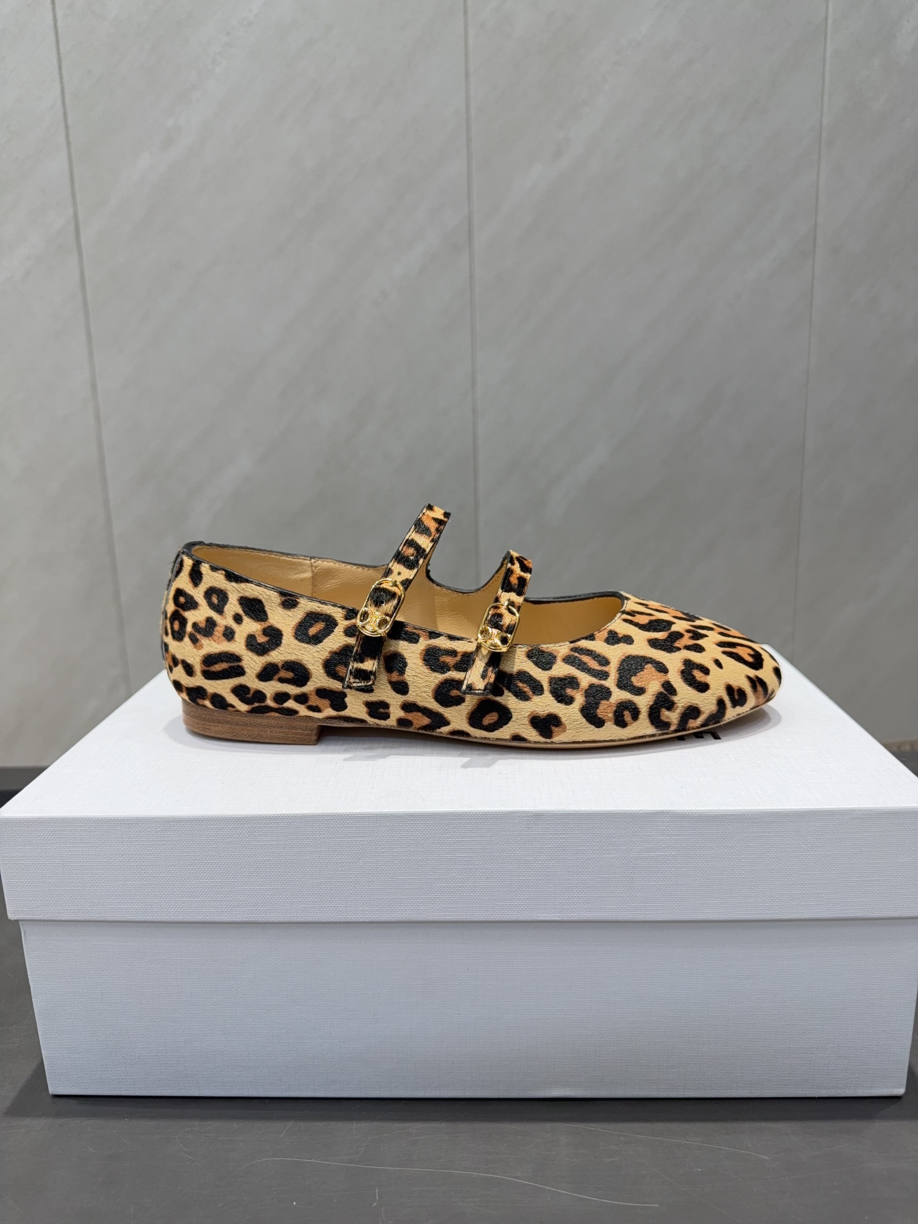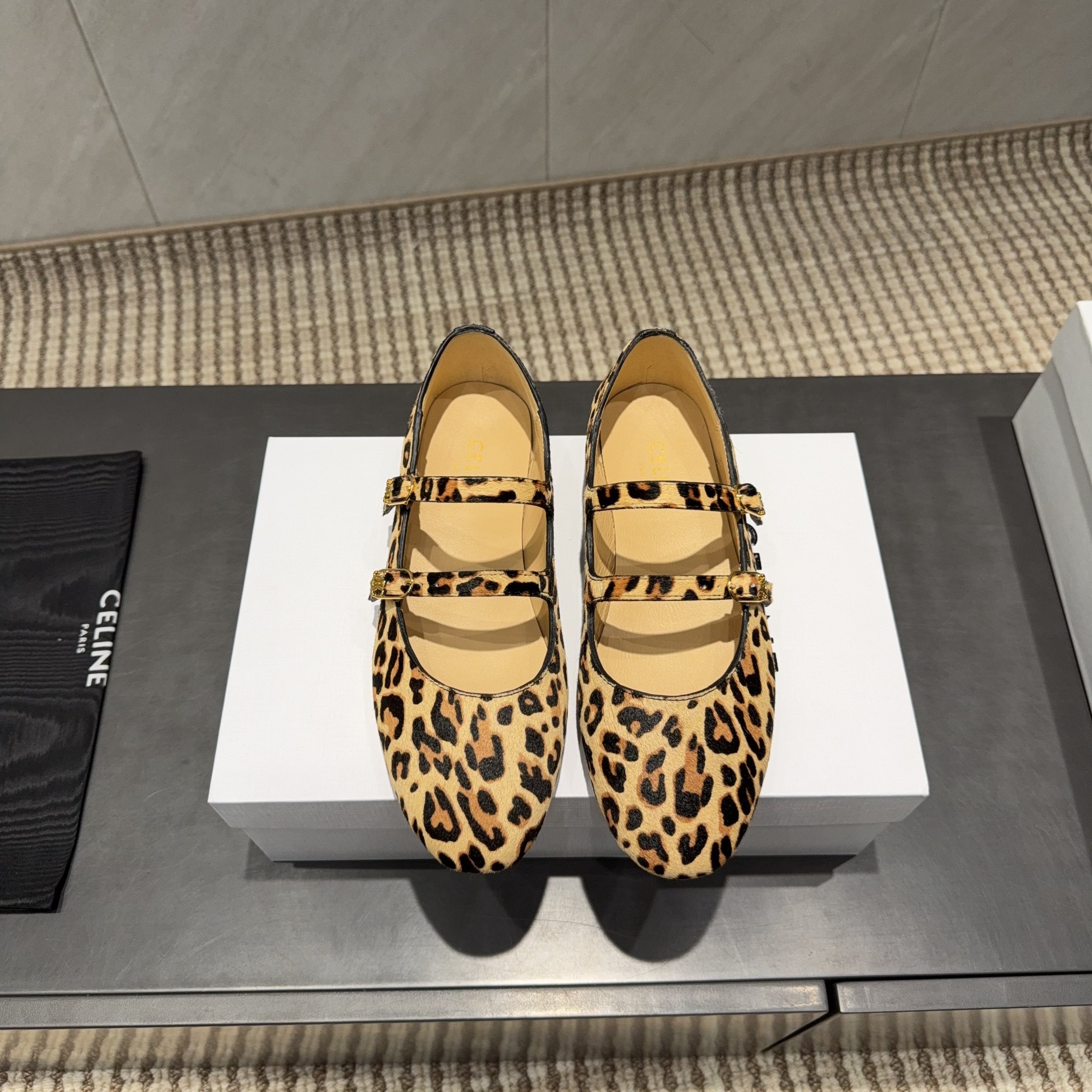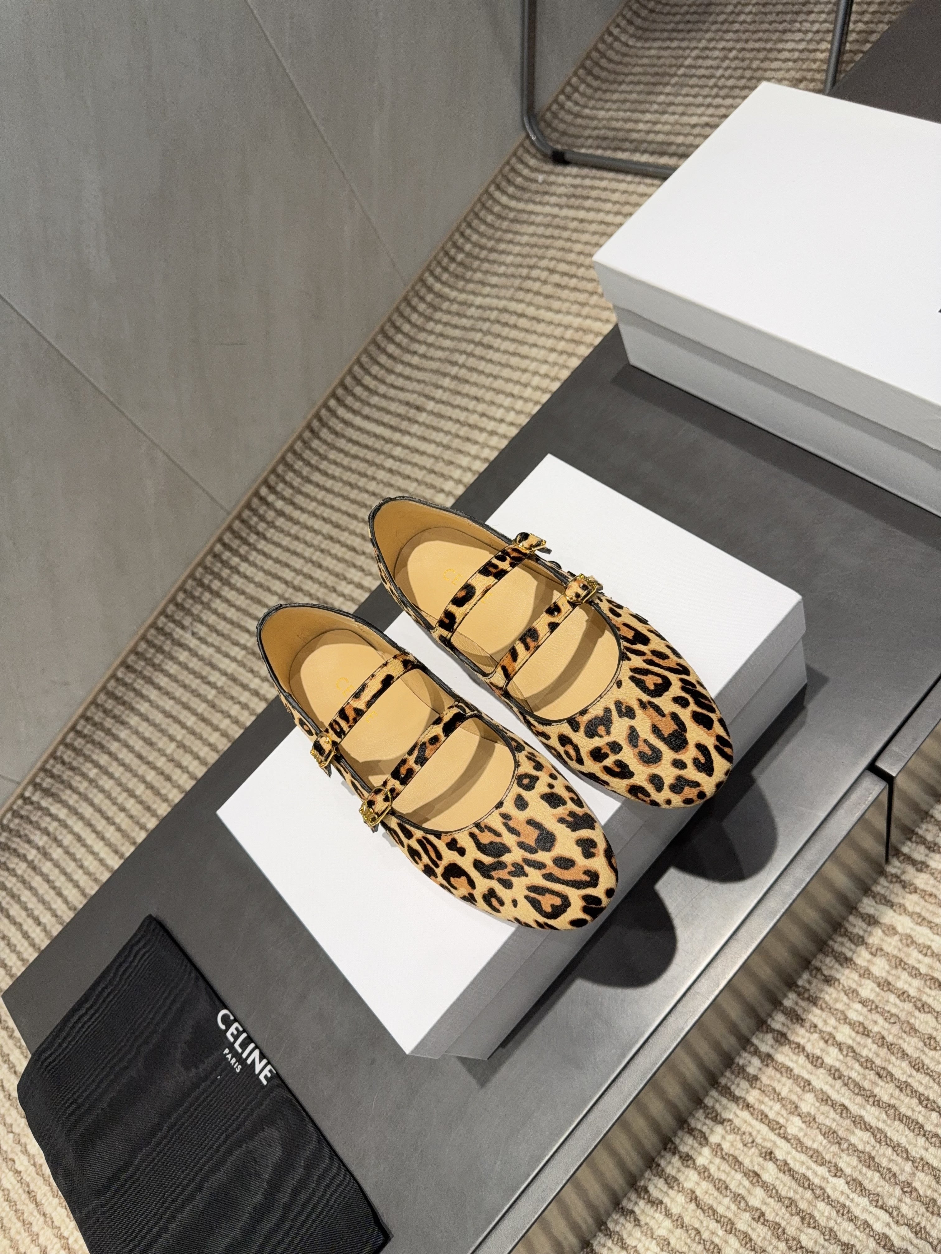 Celine 26 Ballet Flats Leopard Print Suede 614466