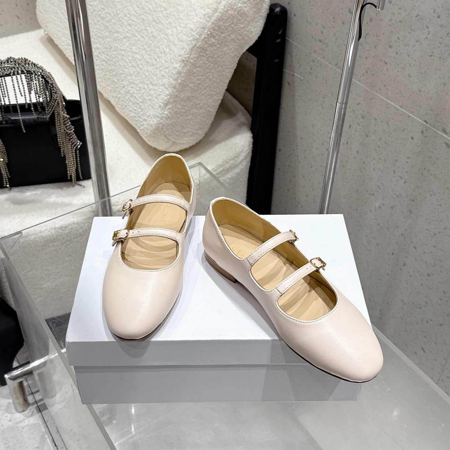 Celine 26 Ballet Flats Light Beige Cowhide 608055
