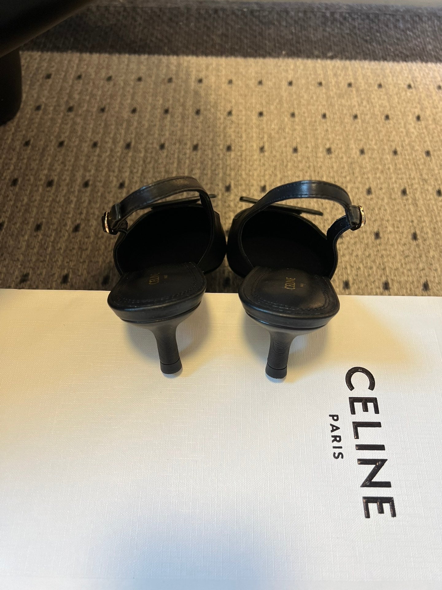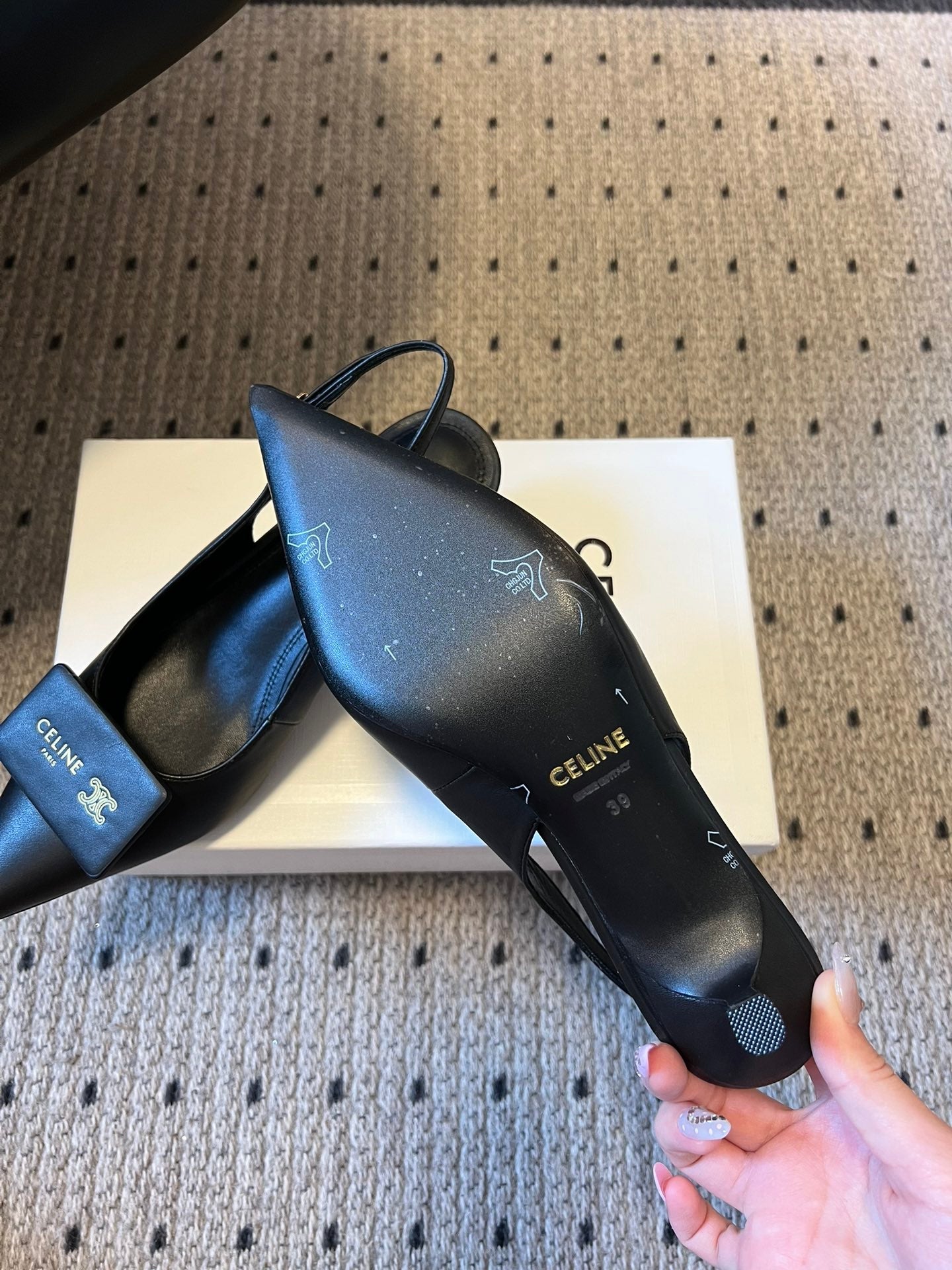 Celine Signature Slingback 5cm Black Lambskin 619637