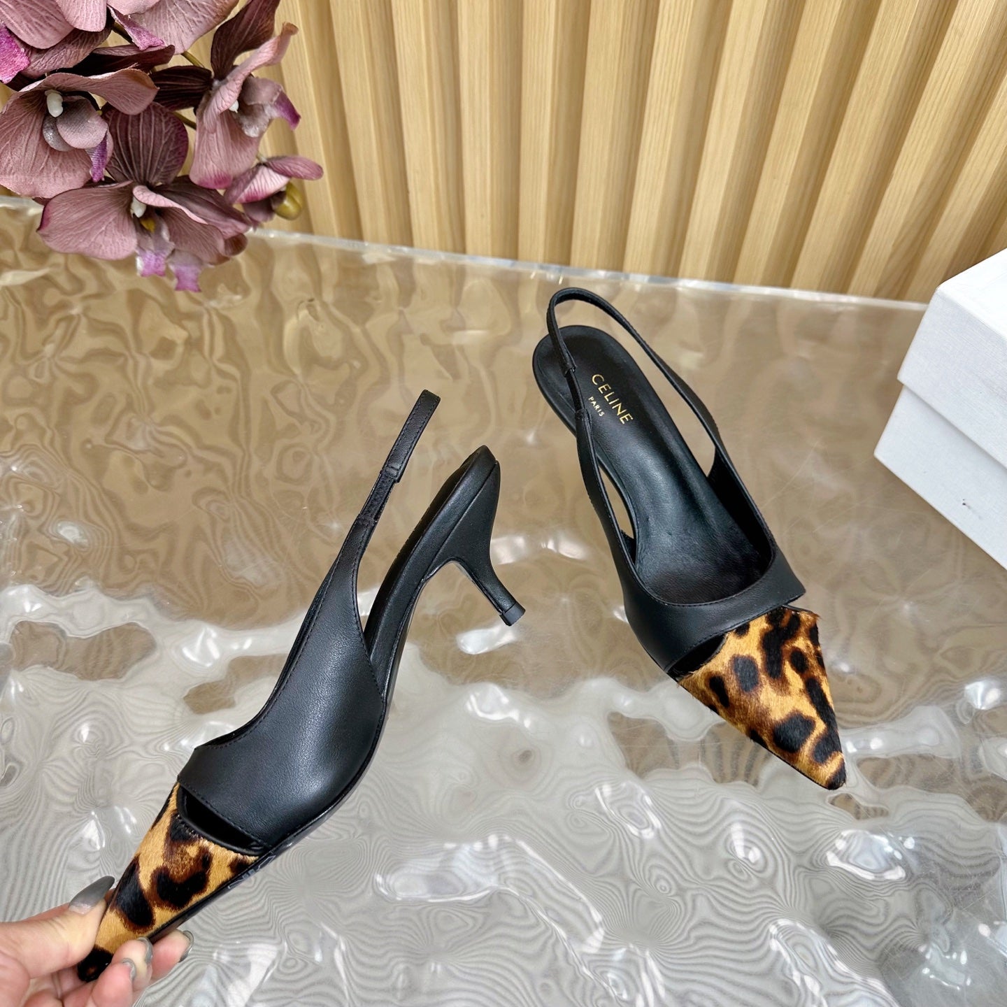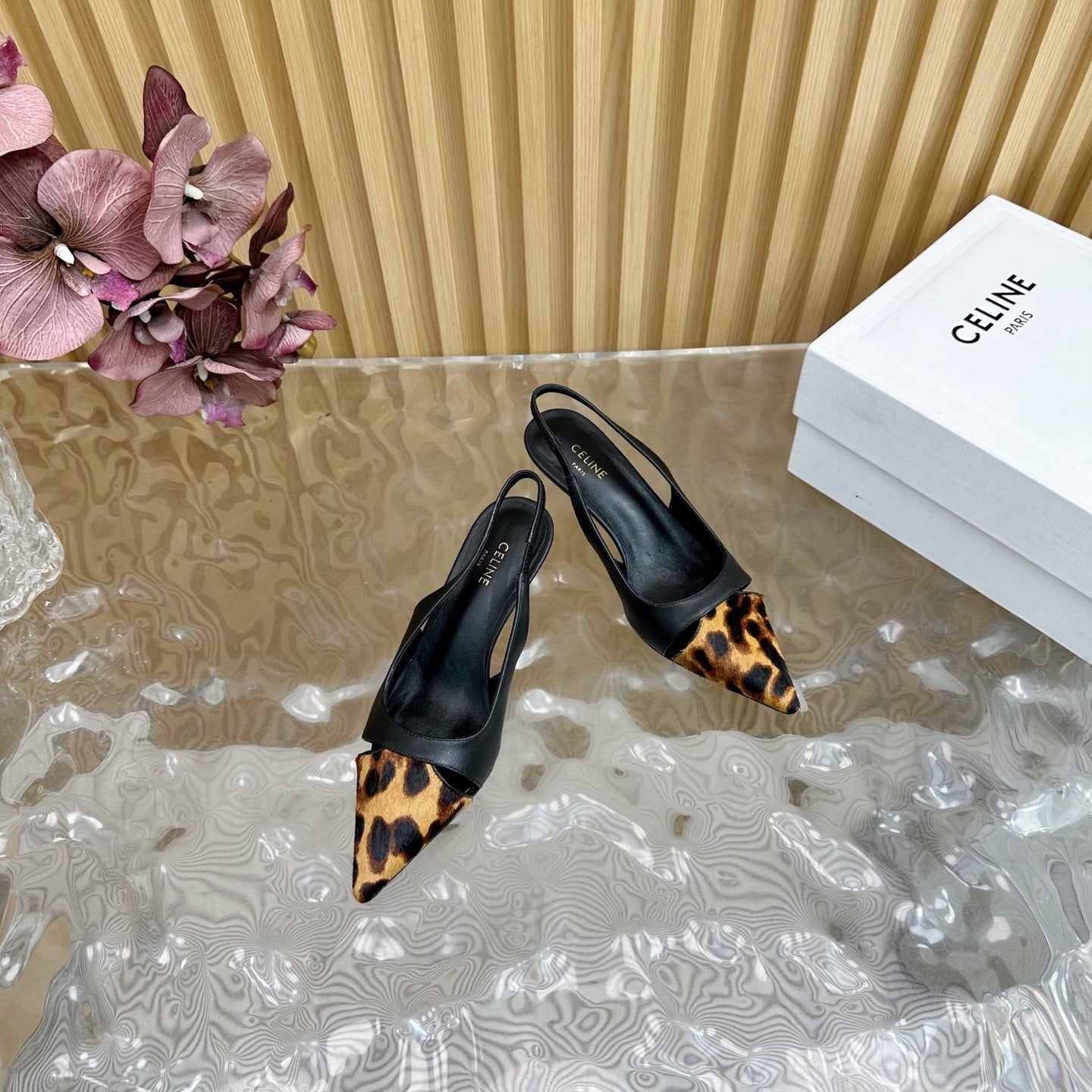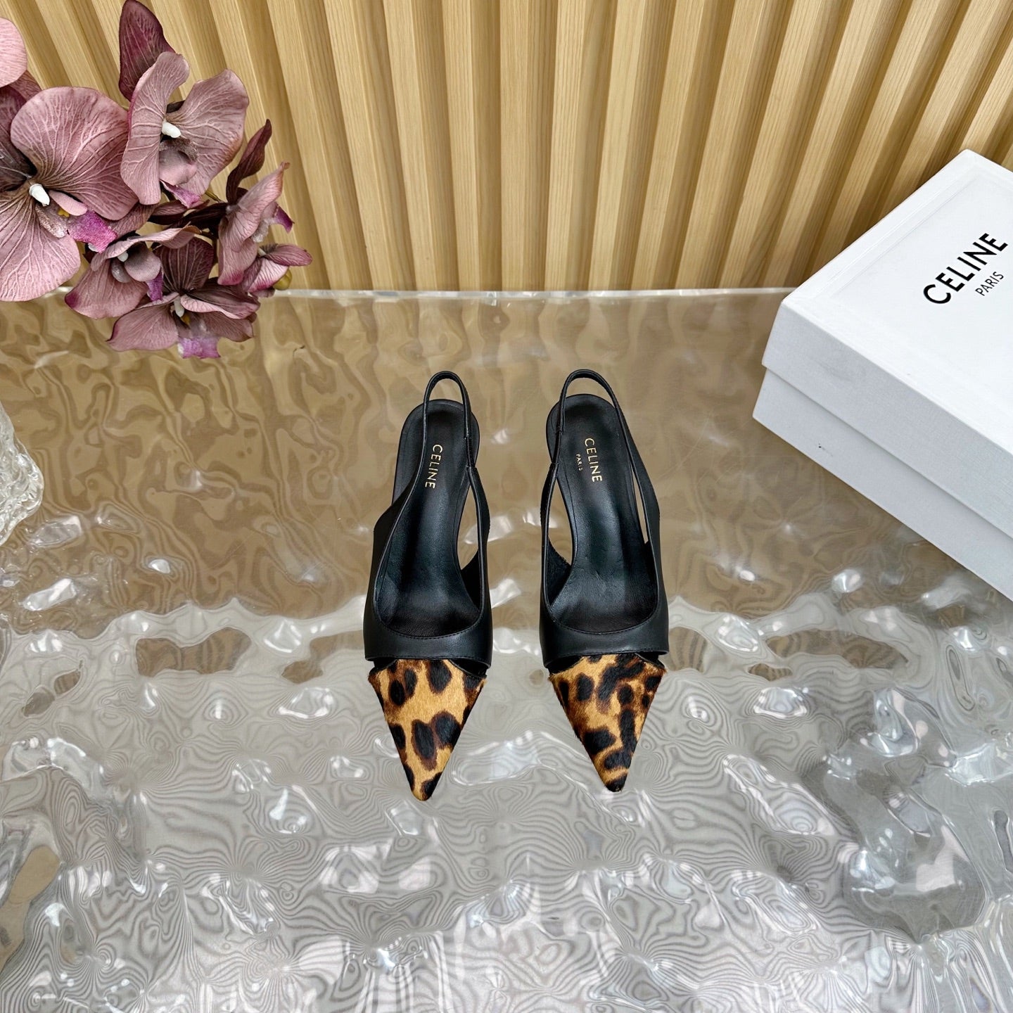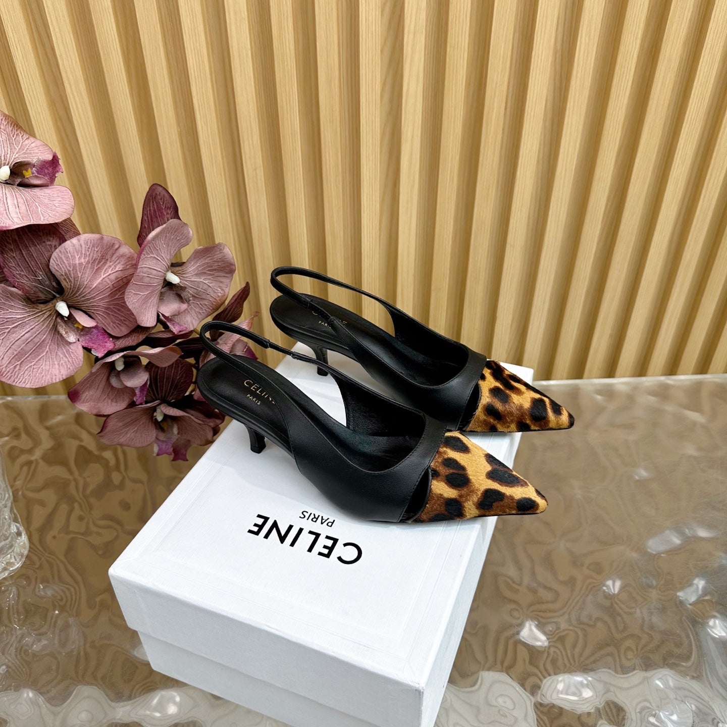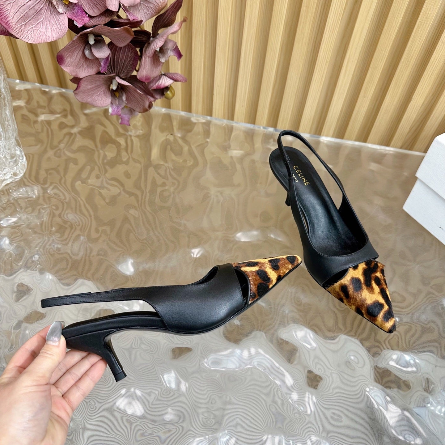 CL Judy Cap Toe Skingback 60mm In Black Calfskin And Leopard Printed Hairy Calfskin 313782