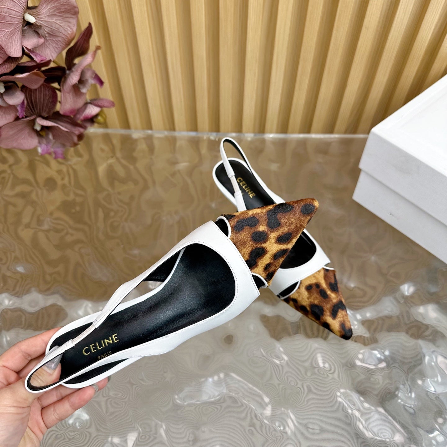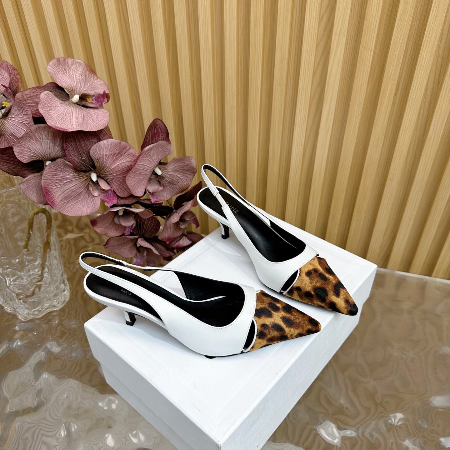 CL Judy Cap Toe Skingback 60mm In White Calfskin And Leopard Printed Hairy Calfskin 313781