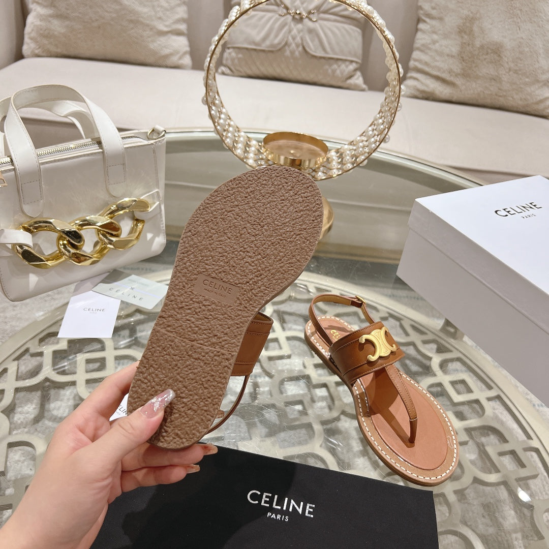 LYMPIA TRIOMPHE THONG IN CALFSKIN CARAMEL BROWN