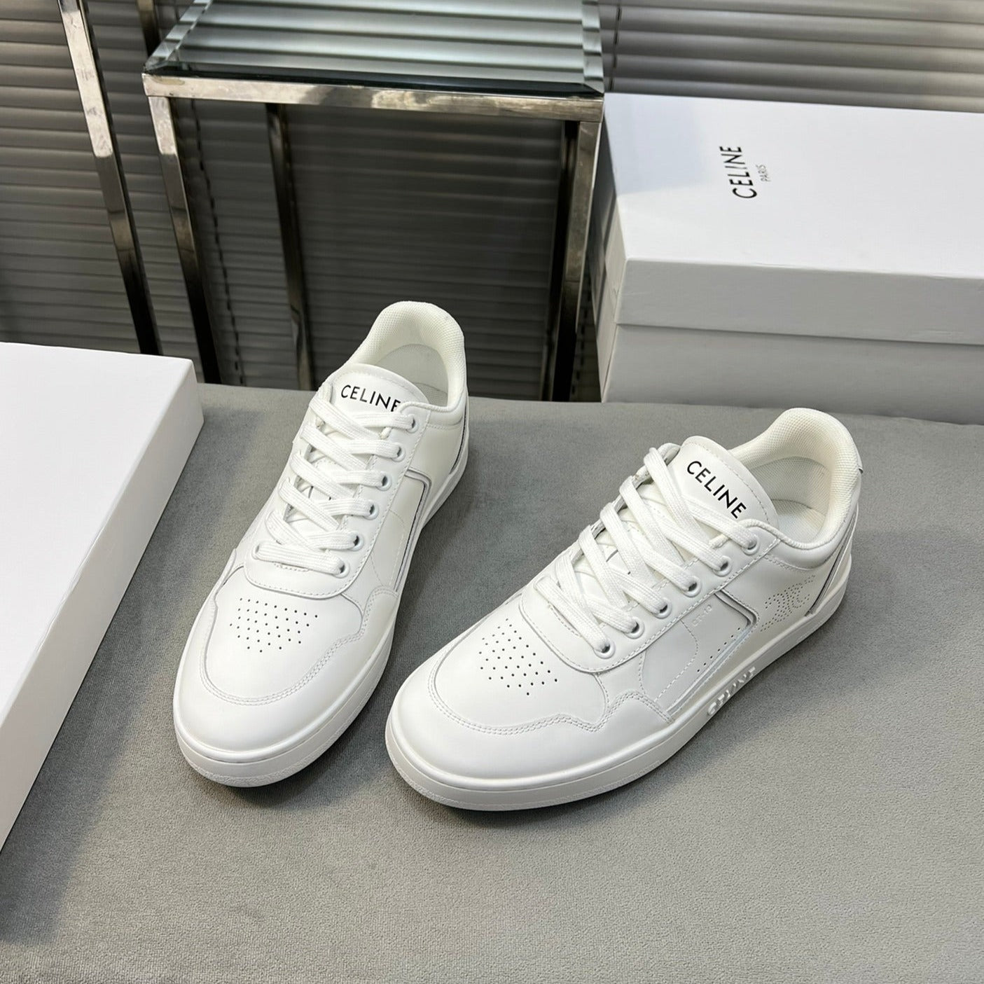 TRAINER LOW LACE-UP SNEAKER IN CALFSKIN, LAMINATED CALFSKIN AND SUEDE CALFSKIN OPTIC WHITE