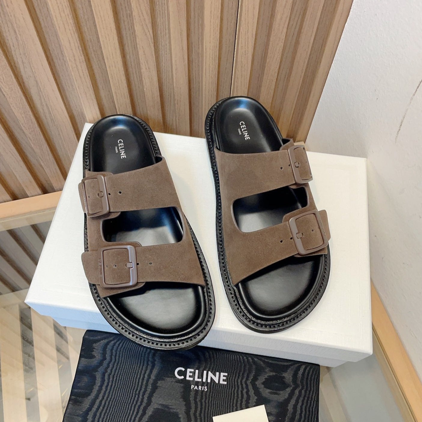 TWIN-STRAP SANDALS WITH SUEDE UPPERS AND BUCKLE CLOSURE BROWN