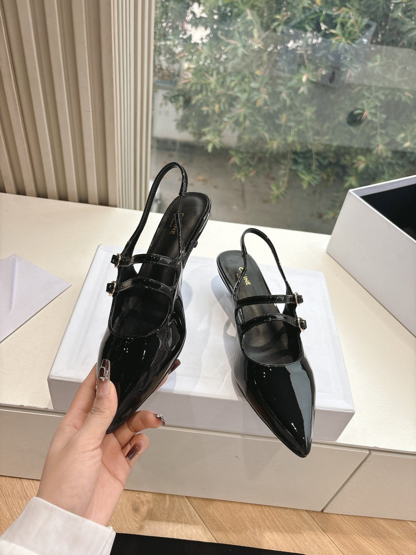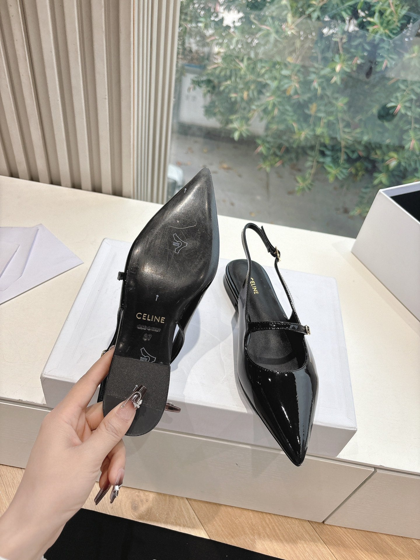 CELINE Slingback Black Patent Leather 285952