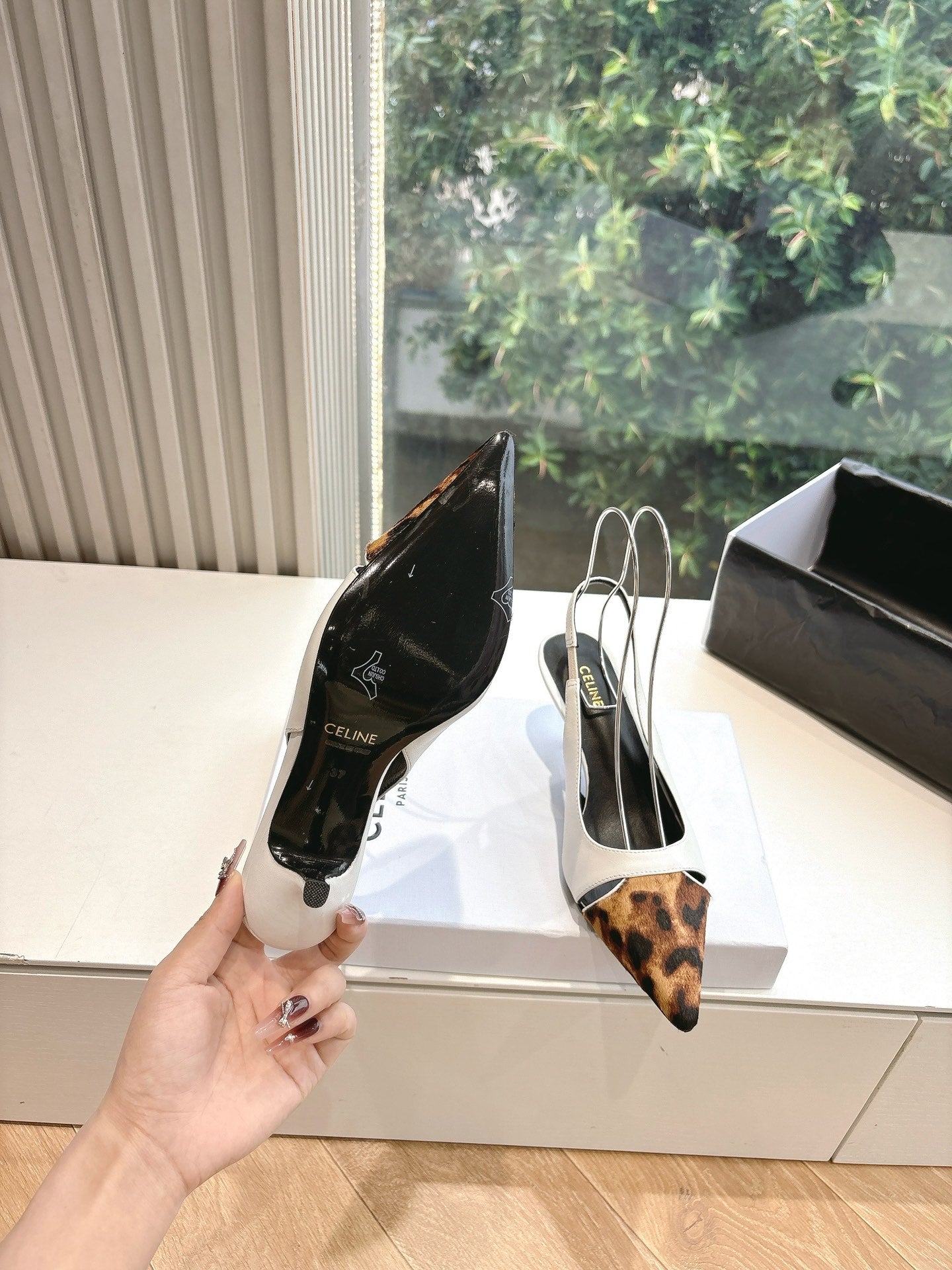 CELINE Slingback Leopard White Leather 285985