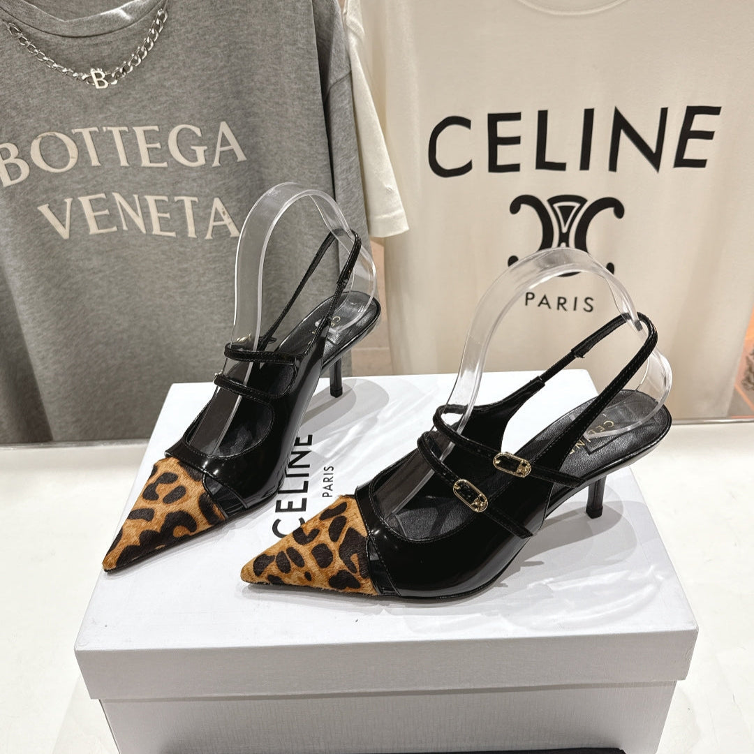 Celine 25C Judy Double Strap Mary Jane Slingback Black mix Brown Sheepskin 236777